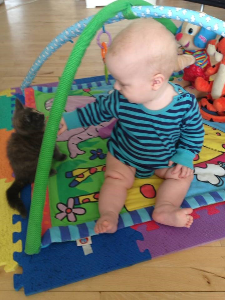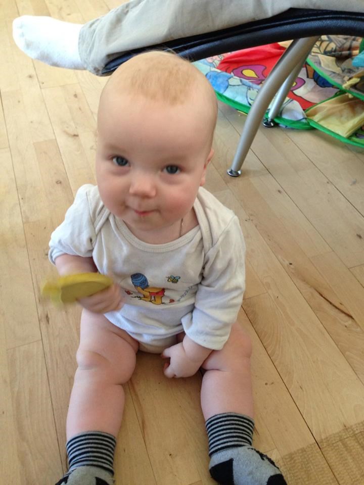 og samtidig har han lært og sidde selv, hvilket er en stor ting, han har bløde led og været ret meget syg så derfor har det taget lidt længere tid, men er en meget stolt moar!