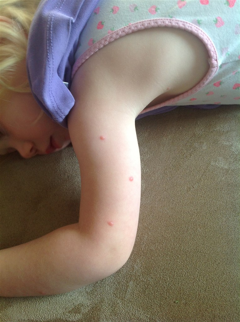 hvis de ikke har udvirklet sig med først en rød knop med så en blæne i og tilsidst et sår så vil jeg ikke tro det er skoldkopper, de udvirkler sig ret hurtigt over et par timer og så en hel del med tiden. Var nemlig selv ved lægen med min datter i juni da hun ikke måtte komme i dp fordi hun mente det var skoldkopper, og jeg påstod at det troede jeg ikke, da de ikke udvirklede sig. Lægen gav mig da også ret i at det kunne det ikke være nok loppebid de så sådan ca ud. Vi har ingen dyr, men bedsteforældrene har høns og de tammer muligvis derfra eller et dyr hun har mødt.