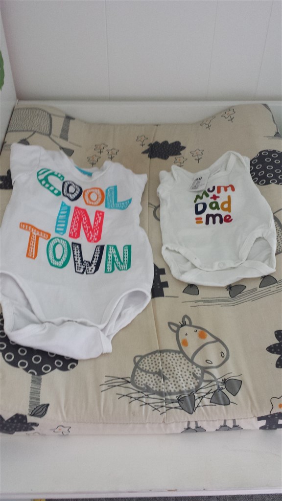 Billedet af tøjet er den body han havde på hjem fra sygehuset, og en body han passer nu..