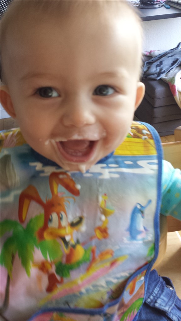Han er ikke så vild med mad faktisk.. Købe-risgrød er det bedste han ved, men så til gengæld også det eneste han vil spise.. Altså købegrød.. Skide belastende, men sp har sagt han bare skal have den tid han har brug for.. Jeg laver forskellige slags grøntsagsmos, hjemmelavet risgrød og han brækker sig bogstavelig talt bagefter og skriger i vildens sky.. Så mon ikke han synes det er møgnederen at jeg stopper andet i ham end hans gode risgrød
