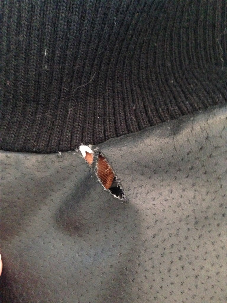 Det bedste du kan gøre, er at købe noget skind i samme tykkelse og farve - to stykker lidt større end revnen, dem skal du lime på inder - og yderside med en lim beregnet til skind.