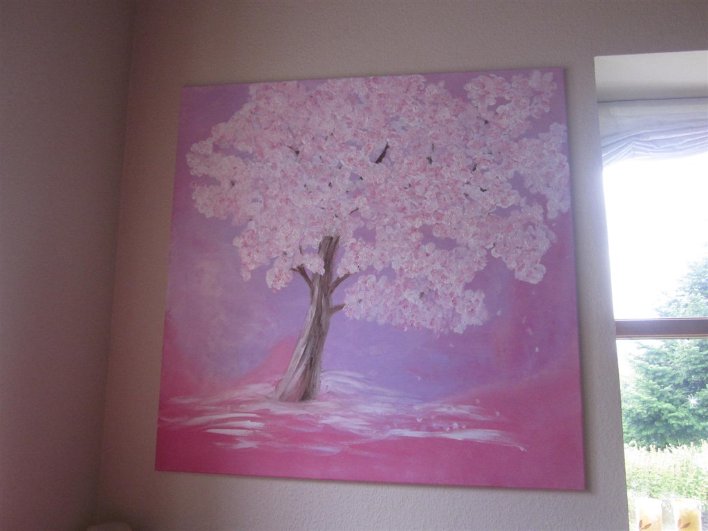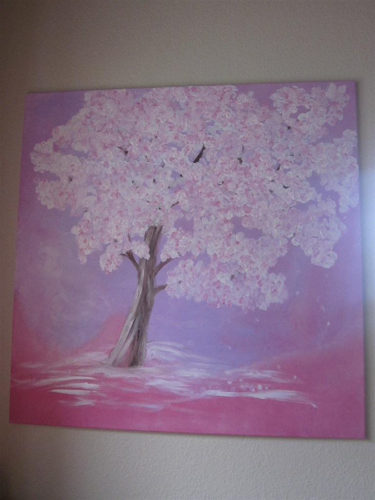 Meget lyserød og lyse farver... Blev simpelthen så glad for at male sådan nogle kirsebærtræer at DET ville jeg prøve at begive mig ud i igen i dag... Dog i mine yndlingsfarver den her gang og langt mere eventyr agigt
