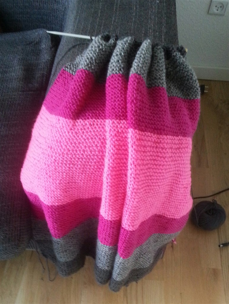 Et babytæppe til prinsessen.. hæklede et til min søn men det tog dæleme næste hele graviditet så denne gang skulle det strikkes. Er helt vild med det.. elsker elsker farverne, fandt det lækreste 100% uldgarn der tåler en vask på 40 grader så det er bare lækkert.. :-D og så tog det kun 2 uger i stedet for 8 mdr...