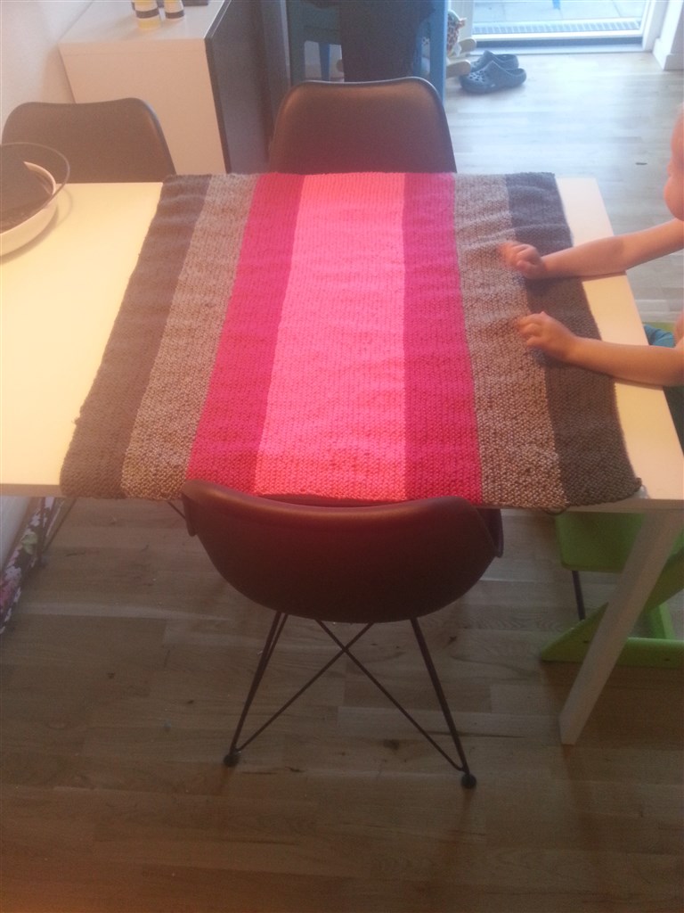 Ville bare lige flashen det, for er sgu så stolt. Måler 70x75 brugt 8 garnnøgle, så det har kostet 280 kr...