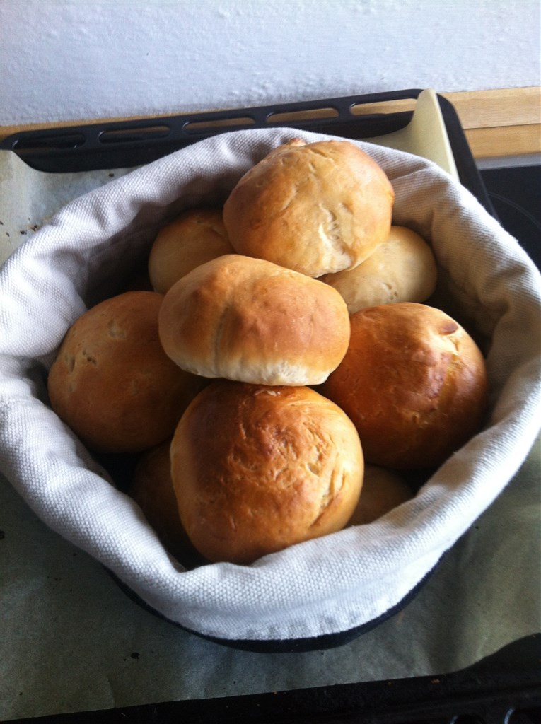 bages i 20min ved 200grader IKKE varmluft. ( Jeg synes varmluft udtørrer brød)