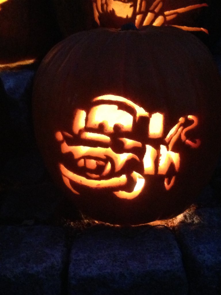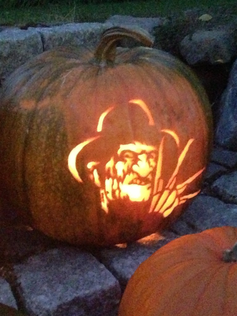 stjernehimmel skriver: Vires første græskar i vores nye hus hende på 8 år, har selv lavet den
