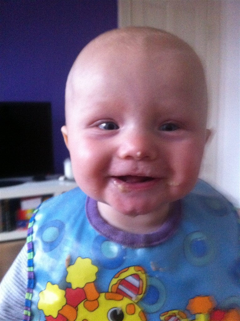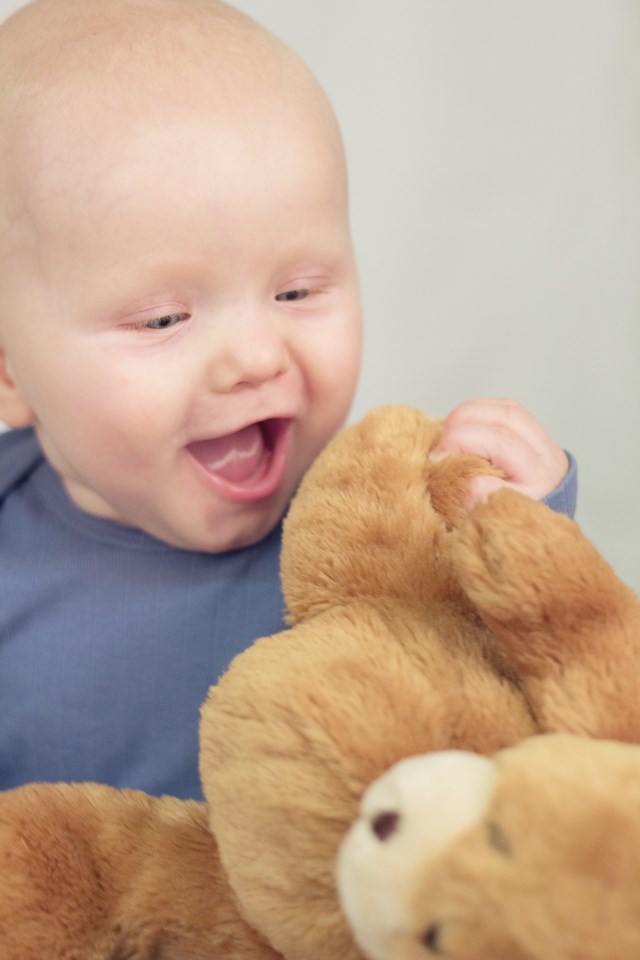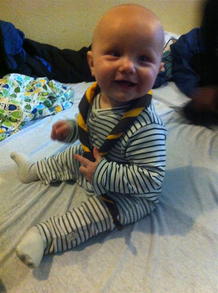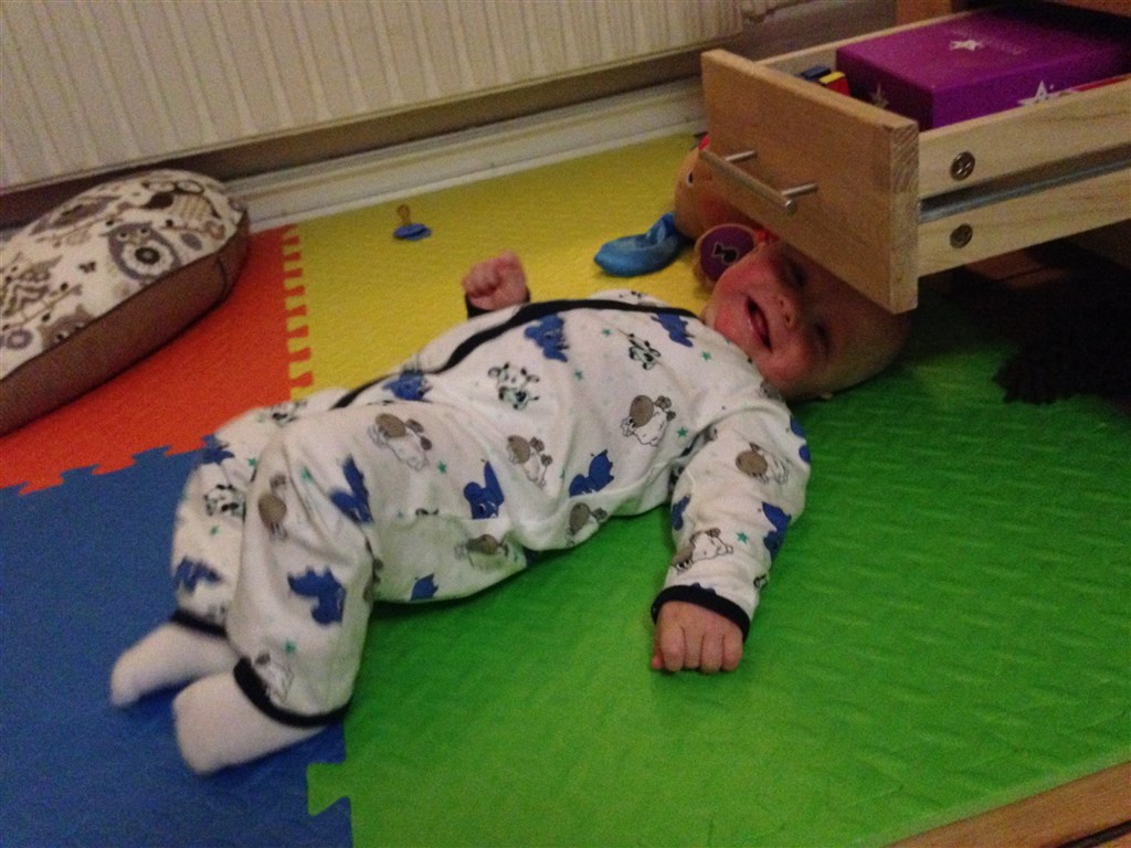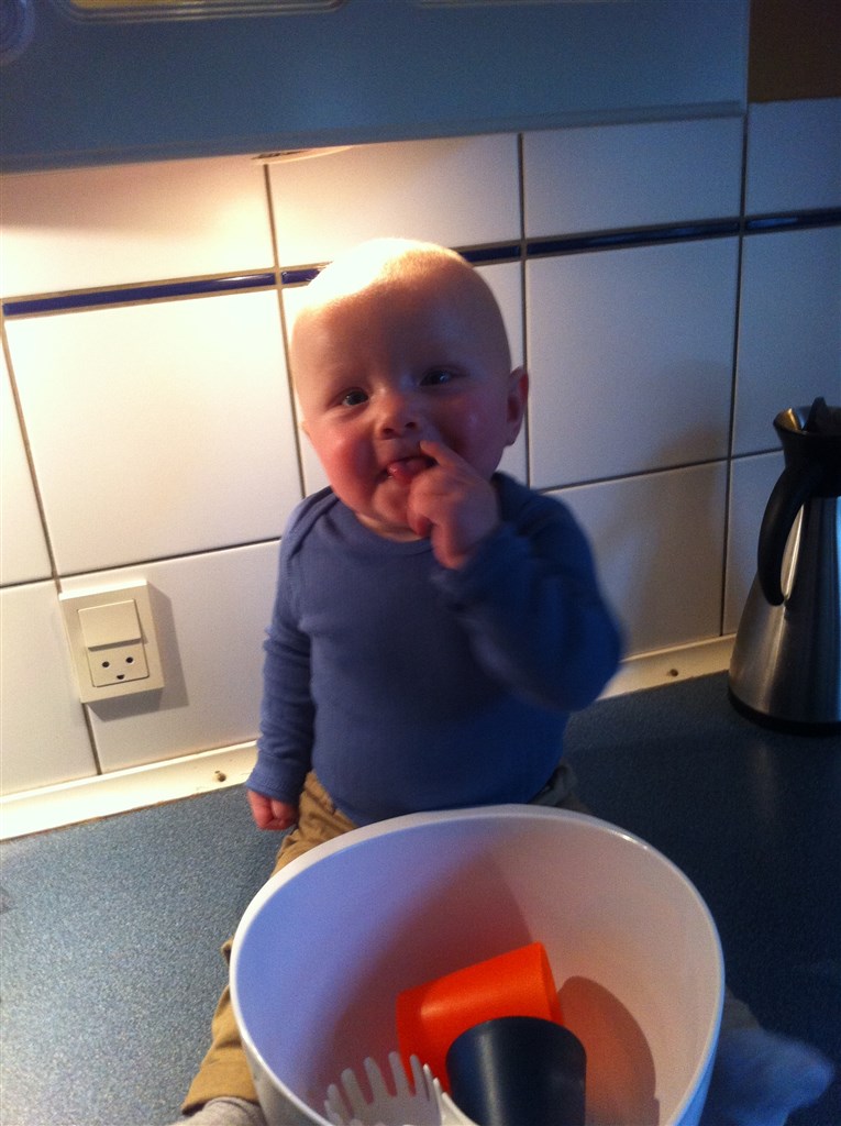 Hjalte er nu 8 (!!!) måneder, og hold da op, hvor går det bare stærkt med udviklingen lige for tiden. Hjalte har for ca. 14 dage siden for alvor knækket rulle-koden og har i en lille måneds tid møvet sig bagud (ubevidst handling
