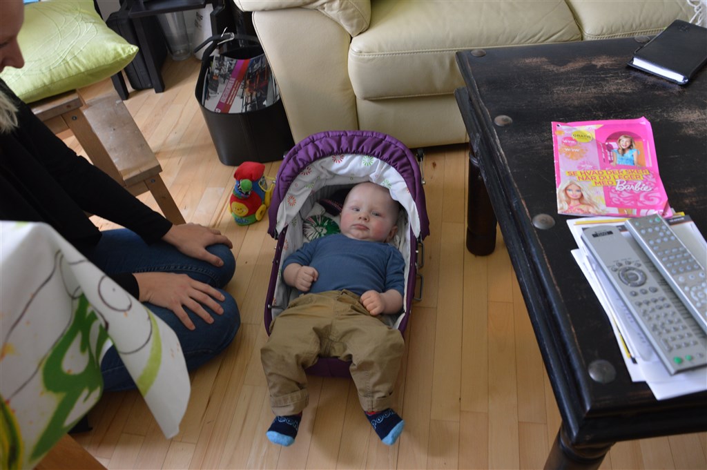 Sidst men ikke mindst er Hjalte i forgårs blevet flyttet på eget værelse om natten. Han kan slet ikke finde ud af det her skiften til vintertid, så han vågner og tror det er party-time kl. 04/05 om morgenen.. Det gør det så ikke bedre at A's vækkeur ringer på ca. samme tidspunkt, og dermed vækker den lille mand, som så begynder at snakke og dermed vækker moren (som bestemt ikke er a-menneske!!).