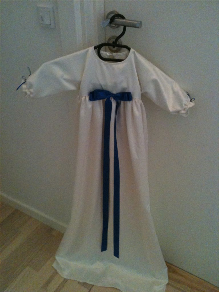 Selv har vi købt en unik kjole, som er skræddersyet af en syerske, som opfylder alle ønsker perfekt. Og som både kan anvendes til en dreng og en pige, eftersom vi jo ikke ønsker at kende barnets køn. Det der glæder os mest er at den er lang (som vi foretrækker) og ikke er helt hvid men har en knækket gylden farve, og så at den er enkel samtidig med den har søde og iøjefaldende, dog diskrete, detaljer.