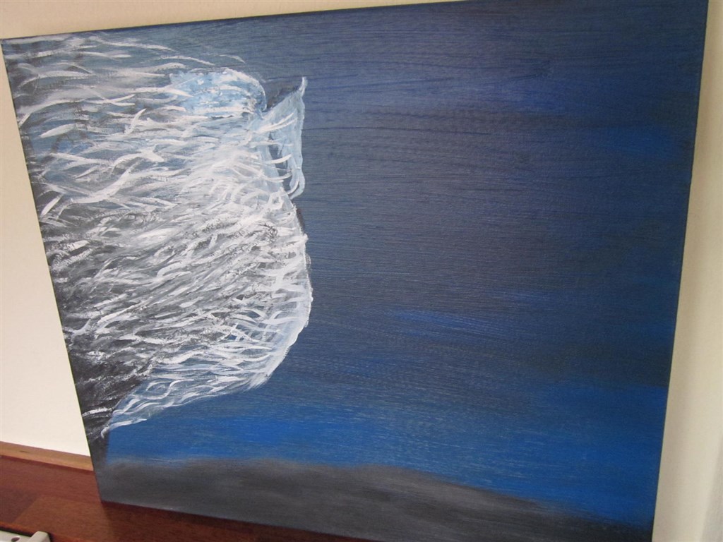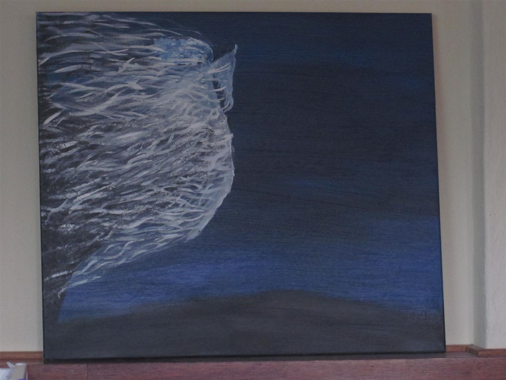 Sad hele aftenen i går og malede.. Hver gang jeg malede noget malede jeg over det andet, til sidst var det bare det her der kom ud... Der var faktisk ingen kontrol over penslen, min hånd gjorde det selv....