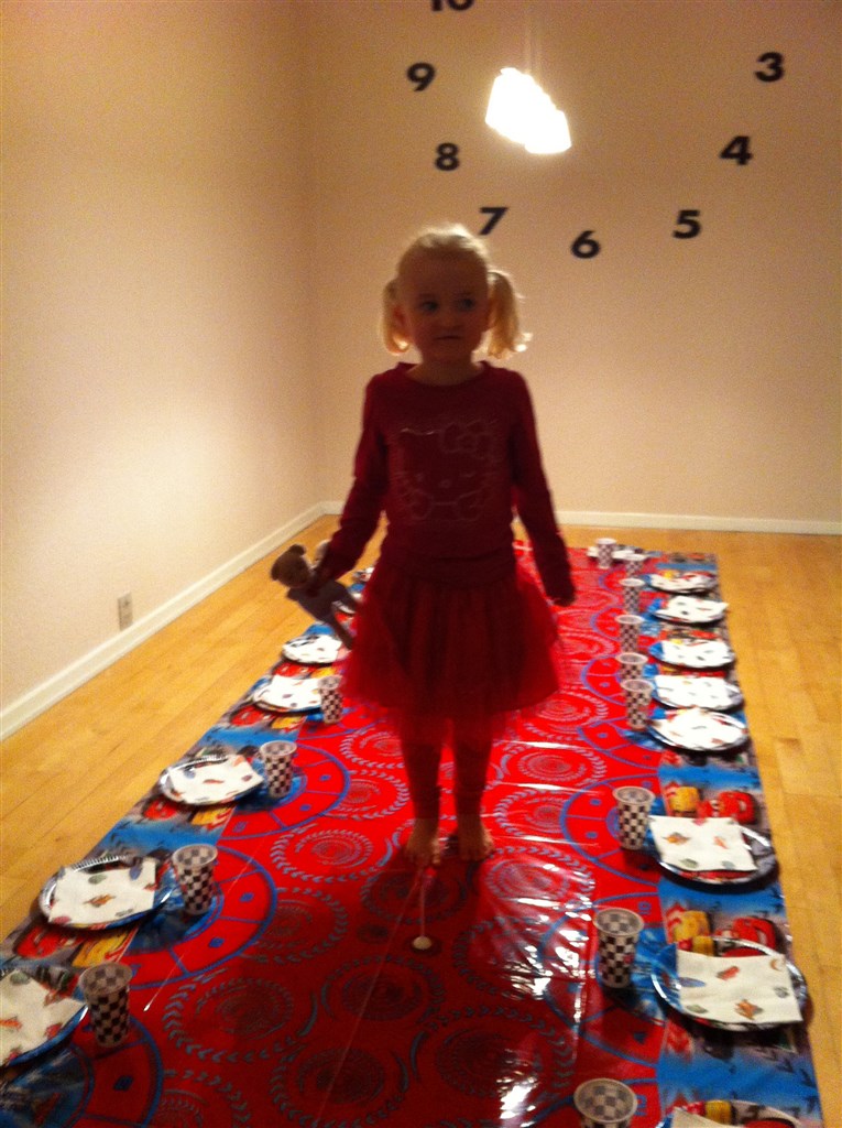 Igår havde vi børnehaven på besøg og det gik så godt. Jeg havde dækket op med Cars, så hun blev så glad så glad. dog fik det gode besøg en brat afslutning, da halvdelen af børnenes tøj og støvler var blevet stålet....! I opgangen, som er aflåst! Så det måtte sendes bud efter en pædagog med tøj og støvler så de kunne komme hjem... Men tøjet dukkede så op af flere omgange kort efter de var gået, så har min mistanke om hvem den skyldige er.... Og vedkommende fik så heldigvis kolde fødder... Pt er det eneste der stadig mangler er et par sko.