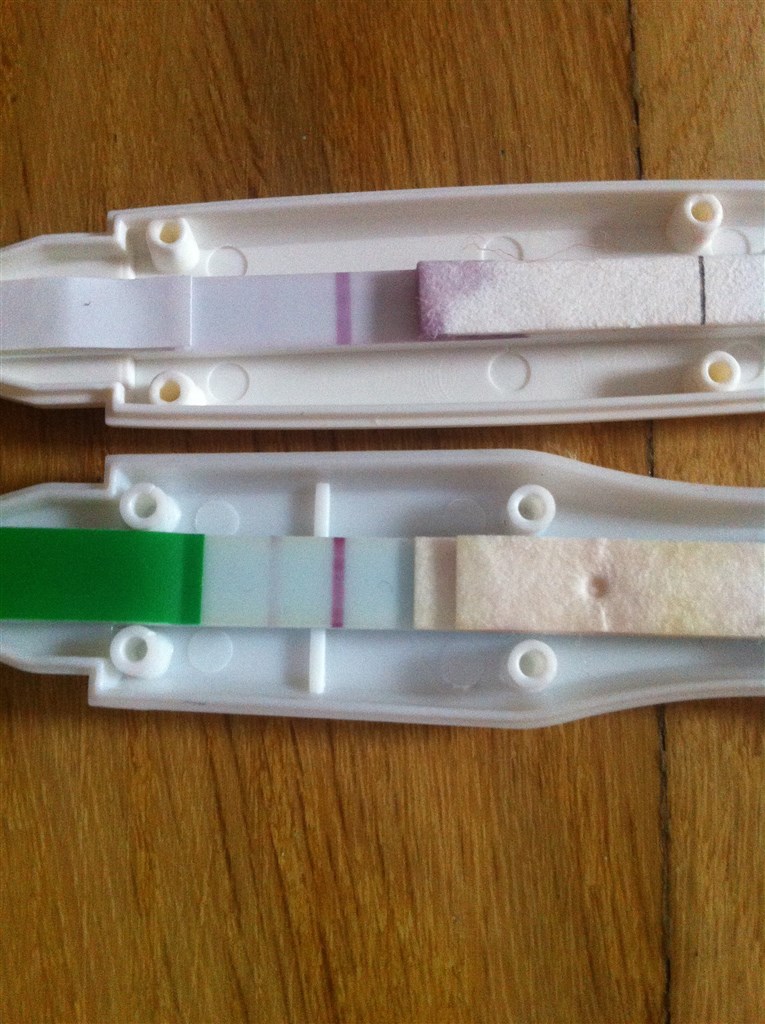 Masig skriver: Går ud fra det er ÆL teste? Ingen af dem er positive, så ja I skal stadig sexe... Begge streger skal være lige tydelige eller teststregen skal være tydeligere end kontrolstregen....