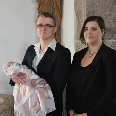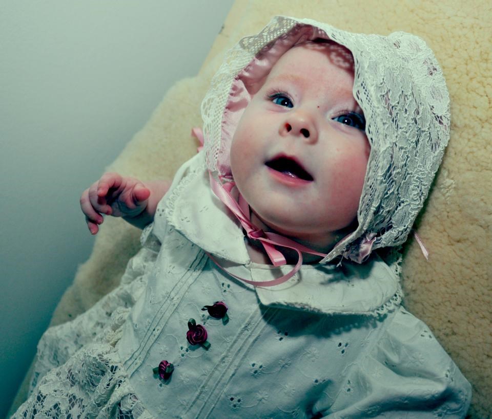 Hun blev også døbt d. 1. december og det gik over alt forventning. Hun sagde ingenting i kirken, og efter hun havde fået vand i håret og præsten skulle tørre hendes hoved af - så gav hun bare det største smil så præsten var ved at glemme hvad hun skulle sige. Stolt mor her
