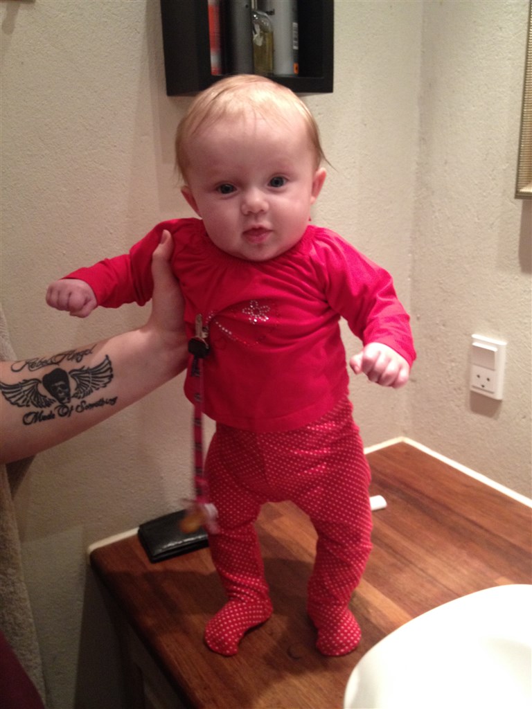 Rinepigen skriver: så blev vores lille trolde unge 4 mdr i dag hun er kun blevet dejligere for hver dag der går og hun begynder så småt at få sin personlighed hun er en MEGA stædig lille dame hehe ( det har hun ikke fra sin mor ) hun har sin helt egen mening om alt og hun skal nok fortælle hvis ikke hun er tilfreds men hun er ligeså skøn som hun er stædig, som i kan se på billederne er hun en meget glad og smilende pige en rigtig humør bombe som prøver ihærdigt på at grine med lyd nu hun er fra d 13 dec kommet på eget værelse og det går kanon godt.. hun sover natten igennem 9 ud af 10 gange med mad 1 gang fra kl 19.30 ca og så til 8.00 Ellers går det bare fremad med vores vidunder og hun har forresten fået en lille kusine her d 27 dec som vi var ovre og besøge igår hun er super skøn.. vi og Naya er VILDE med hende men hold op hvor er hun lille i forhold til Naya.. det er slet ikke til at forstå hun også har været så lille vores guldklump vokser jo alt for hurtigt