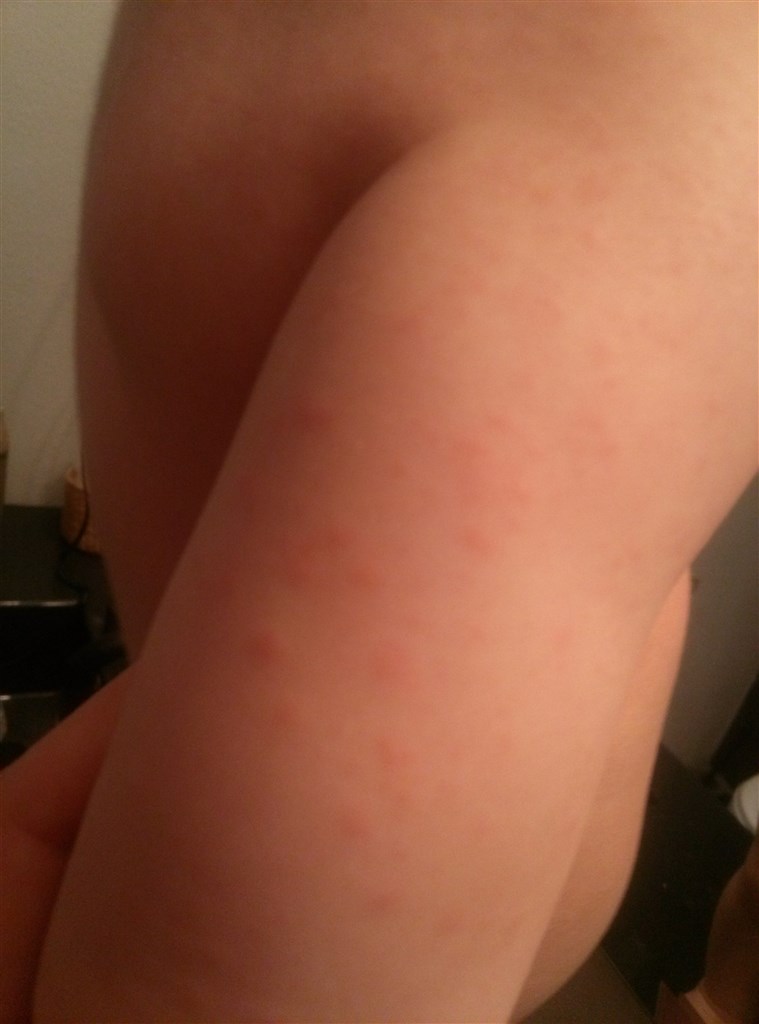 Det ved jeg faktisk ikke - vores søn fik nældefeber grundet jordbær, så måske er det noget hun har spist? Siger ikke at det er det, men det ligner.. min søn havde først lidt på armene og så bredte det dig med lynets hast til resten af kroppen.. var overbevist om at det var skoldkopper.. det forsvandt efter 3 dages tid mener jeg..