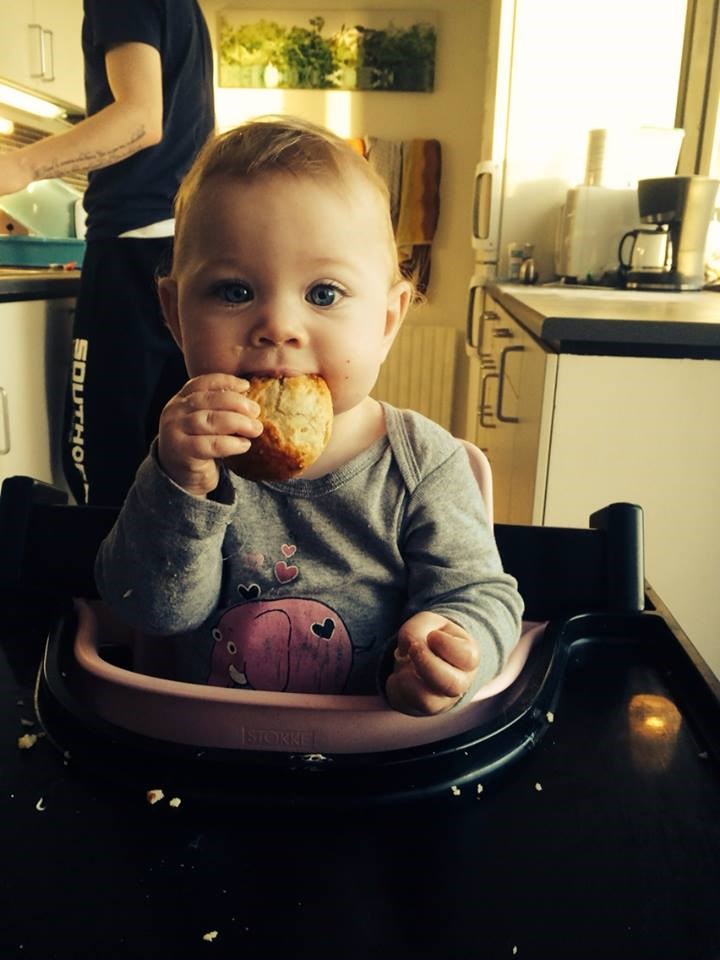 Hun får næsten kun natflaske nu, sommetider får hun en morgen/middags flaske men det er nu også fint nok at hun ikke helt kan undvære flasken. Hun spiser jo alt hvad vi spiser og hun er slet ikke kræsen (hendes far er/har været vanvittig kræsen). Ja, vi er jo generelt bare så stolte af vores lille prinsesse
