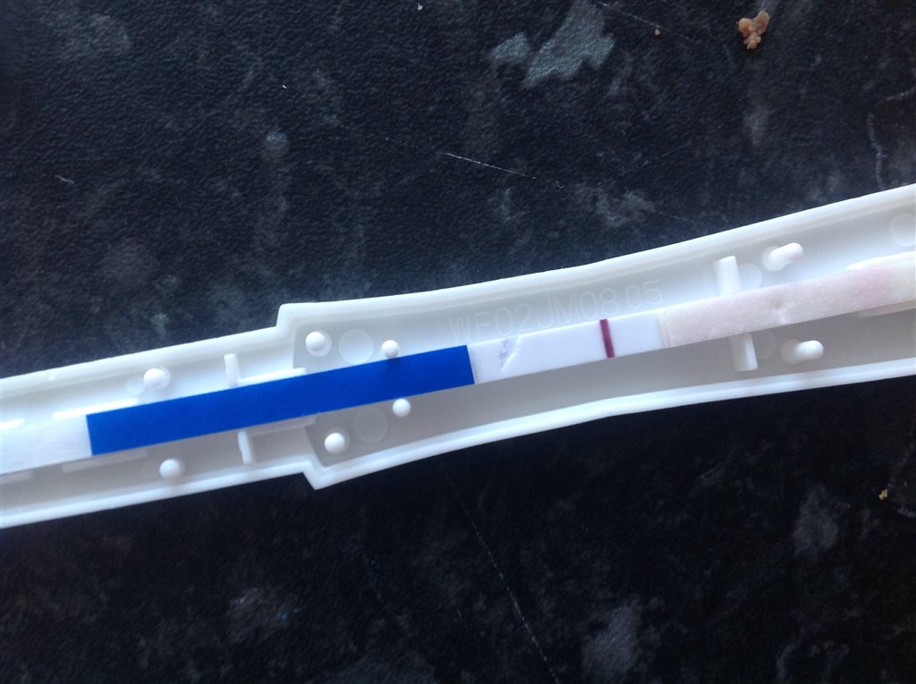 Kan se en lille nærmest usynlig skyggestreg - den ligner min test fra da jeg først testede positiv, så krydser fingre for at de to streger bliver tydeligere om nogle dage