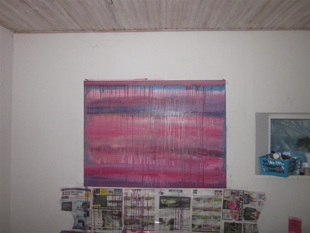 Årh, hvor er det bare super at have fået en ny arbejdsplads, så man kan være der og have ro og fred til bare at male... Er først begyndt igen i dag efter det sidste maleri jeg lavede som var meget dystert... Nu kommer farverne så småt tilbage igen og jeg glæder mig til at lave de bestillinger på malerier som jeg har fra forskellige herinde!