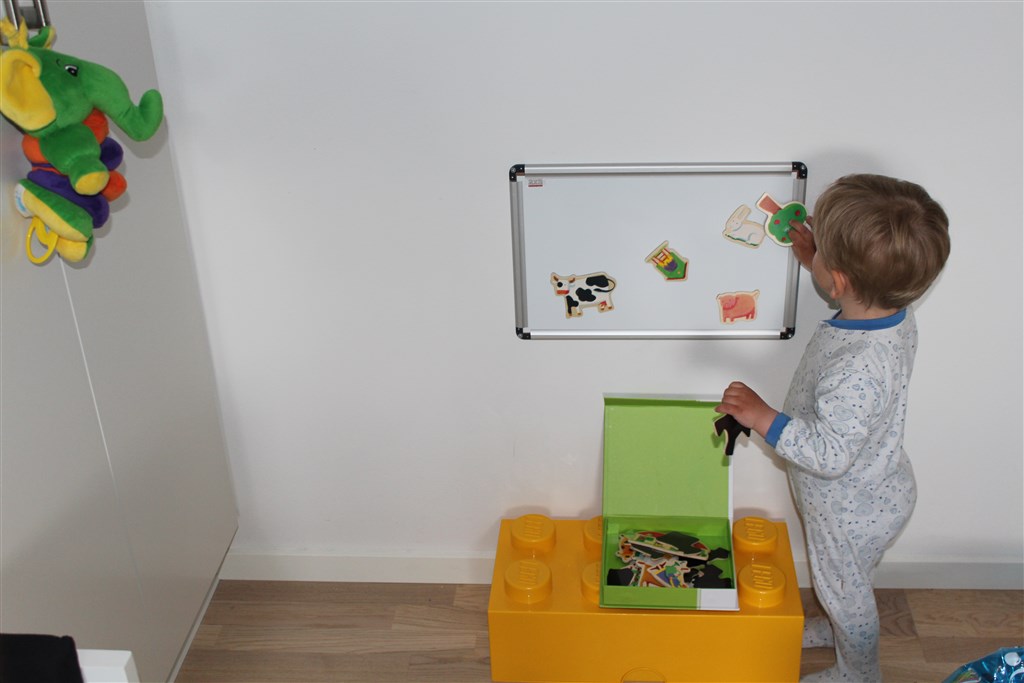 Jeg er fuldstændigt fantasi-løs på området, og det eneste jeg ved er, at en del af hans legetøj forbliver i stuen. Værelset bliver primært til at sove/puttet, blive puslet og få tøj på.... men på sigt bliver det selvfølgelig hans rigtige værelse.