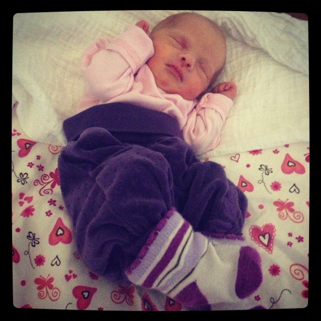 På denne tid for præcis 1 år siden var Mikkel, min mor og jeg på vej til Hvidovre hospital, da jeg skulle sættes igang. Jeg fik veer omkring kl. 17 og havde den ondeste vestorm i lidt over 4 timer! Kl. 21.58 var hun ude, så lille, skrøbelig og fin