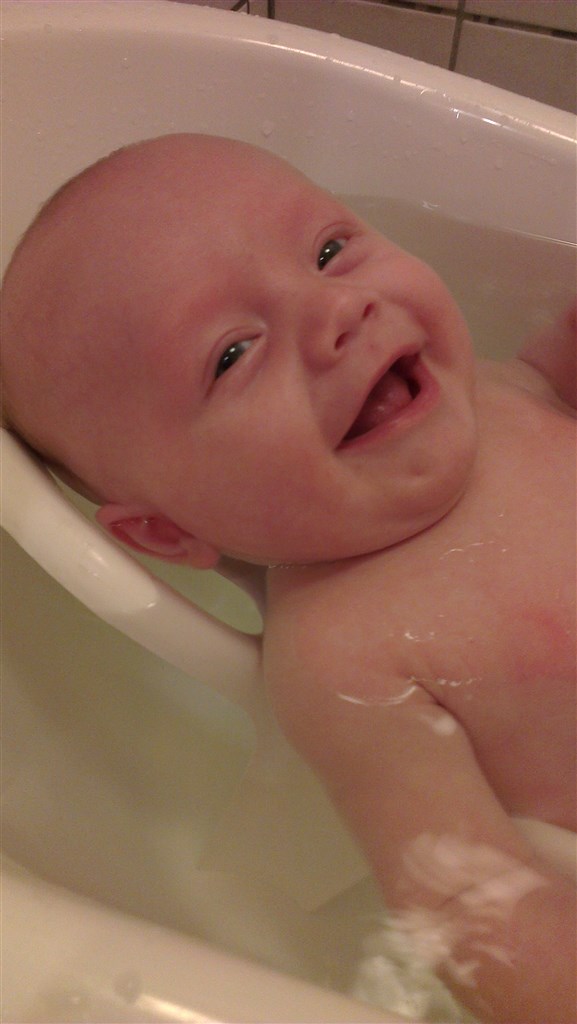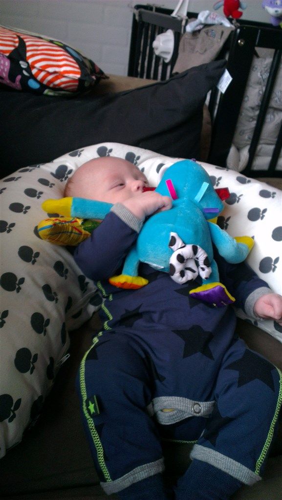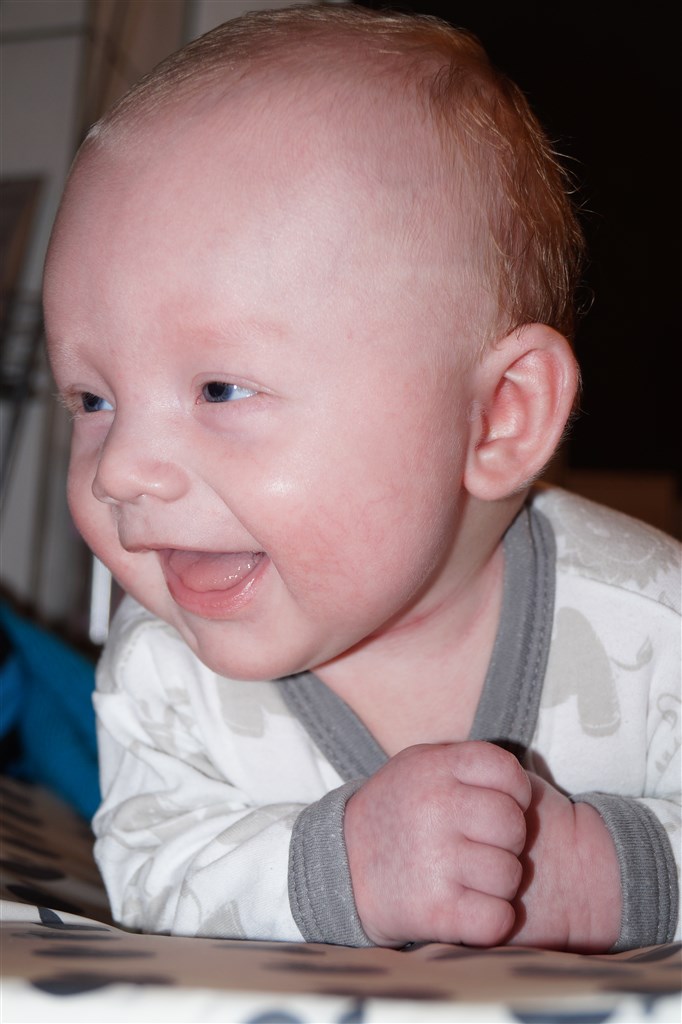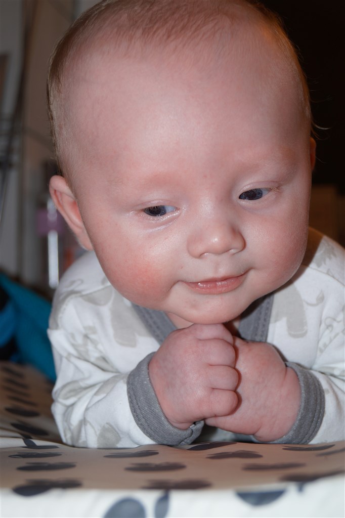 Uha, ja.. Sp var her d. 10. januar, hvor Andreas var 3 måneder og 1 dag. Han vejede 5910 g (fv 2740 g) og var 60 cm lang (fl 49 cm). Synes godt nok han bliver stor! Hovedet holder han stort set selv og han nyder at ligge på maven