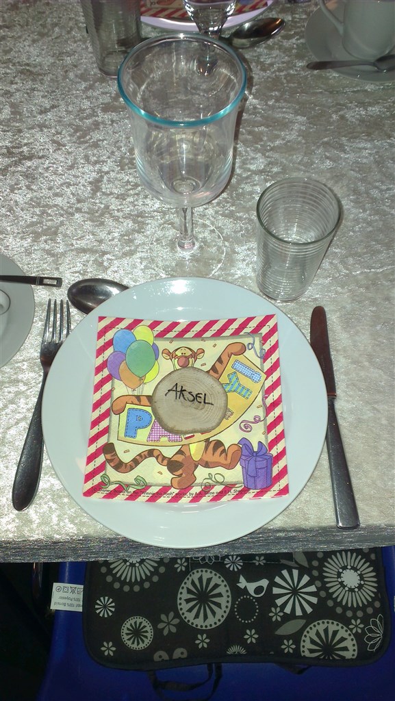 ) og så havde vi små grønne servietter og store blå servietter (til hhv. kage og mad).