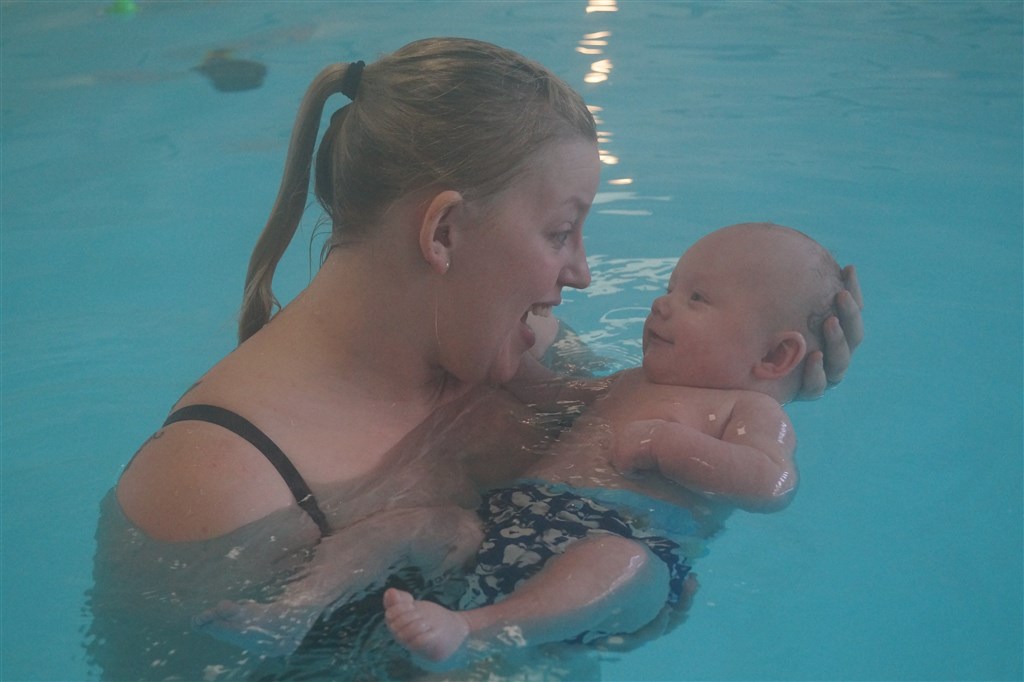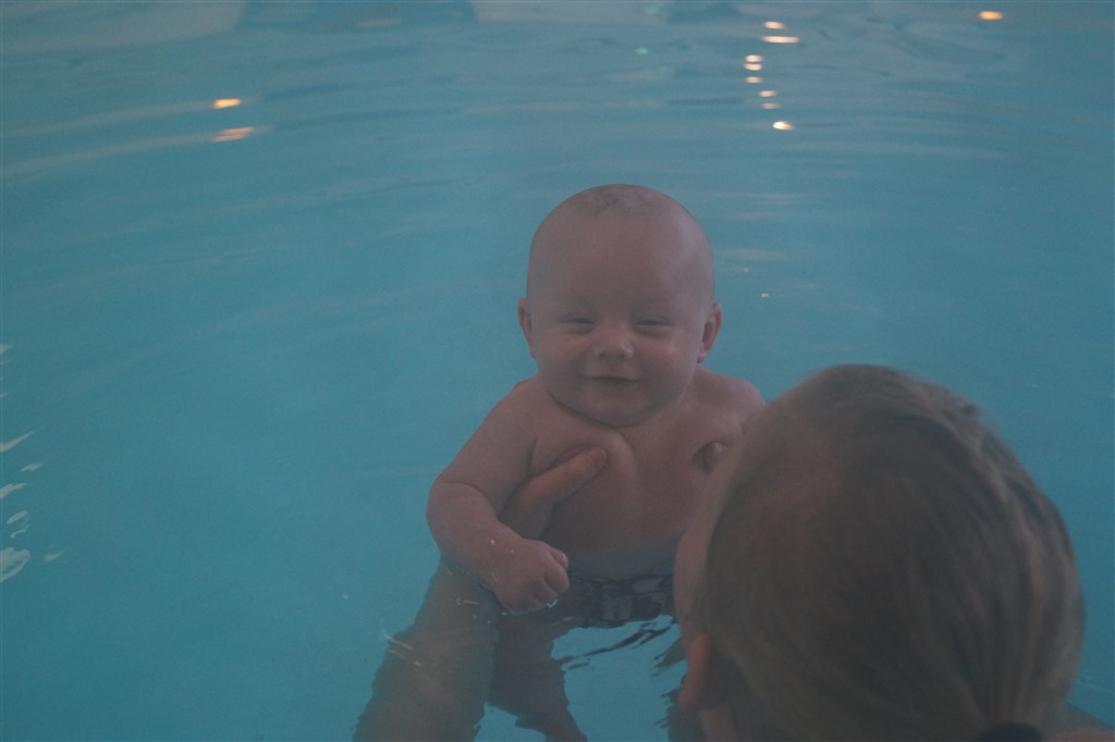 Vi er til babysvømning mindst en gang i ugen og det elsker han også