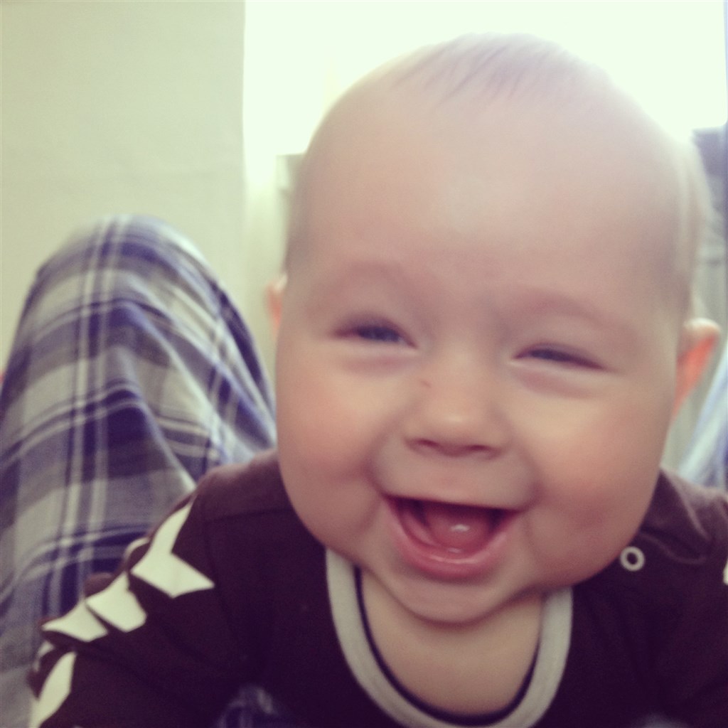 Han er simpelthen bare jordens dejligste og gladeste dreng. Han smiler, griner, hviner og råber dagen lang – munden står aldrig stille