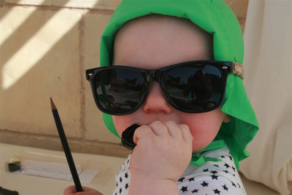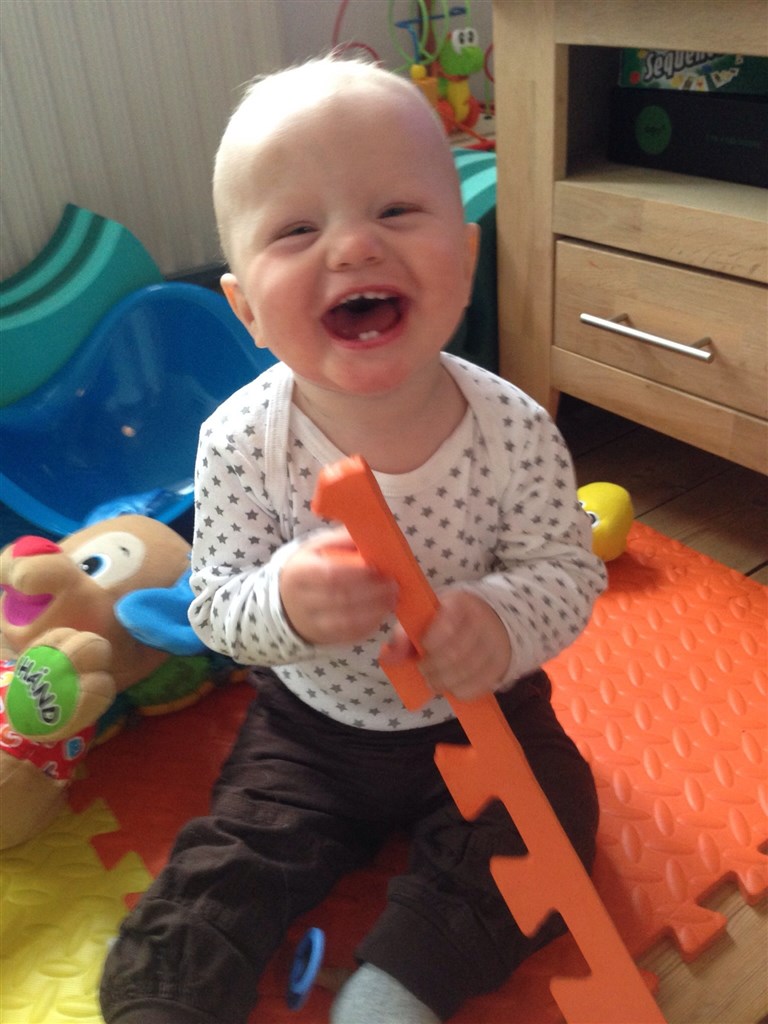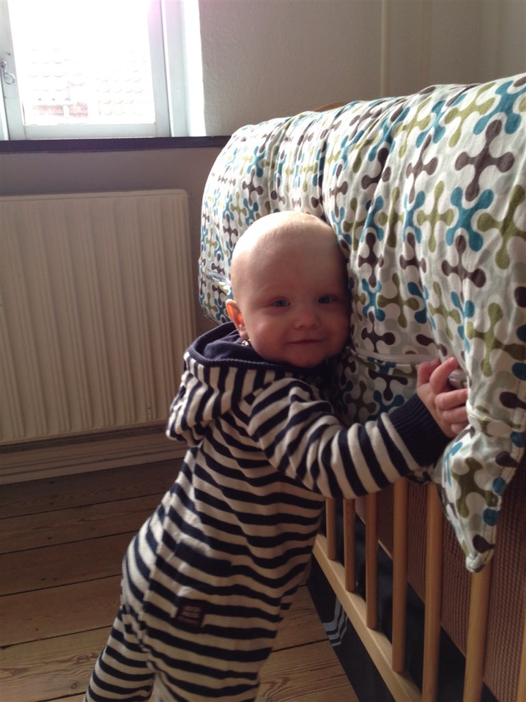 Derudover forstår han og kan reagere på simple sætninger som "kom", "samler du lige bolden op?", "må mor få sutten?" Osv. På denne front opdager vi hver dag nye ting han kan.