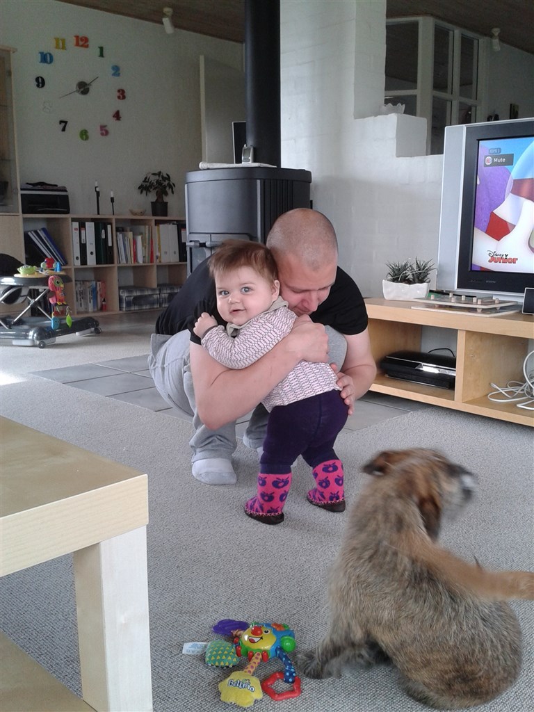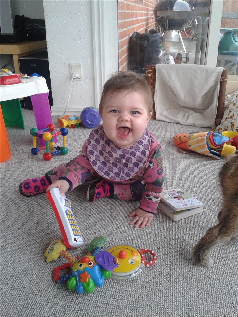 ), og der er ingen grænser for hvad der ryger indenbords. For nyligt har hun dog opdaget at hun selv kan drikke af kop, og så bliver det der med maden mindre interessant