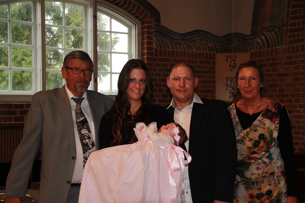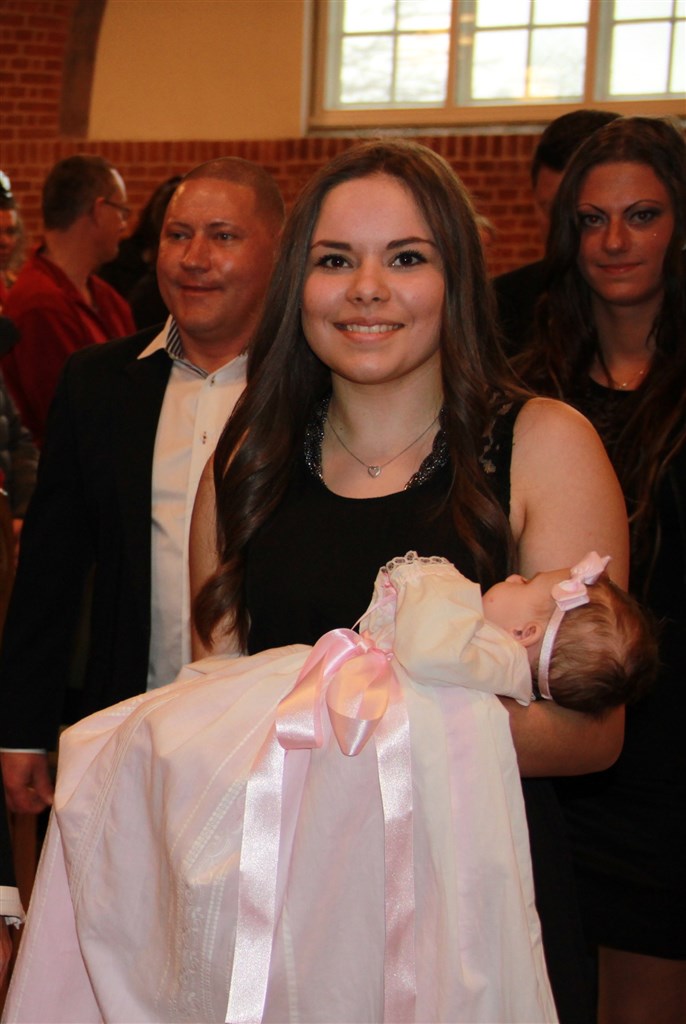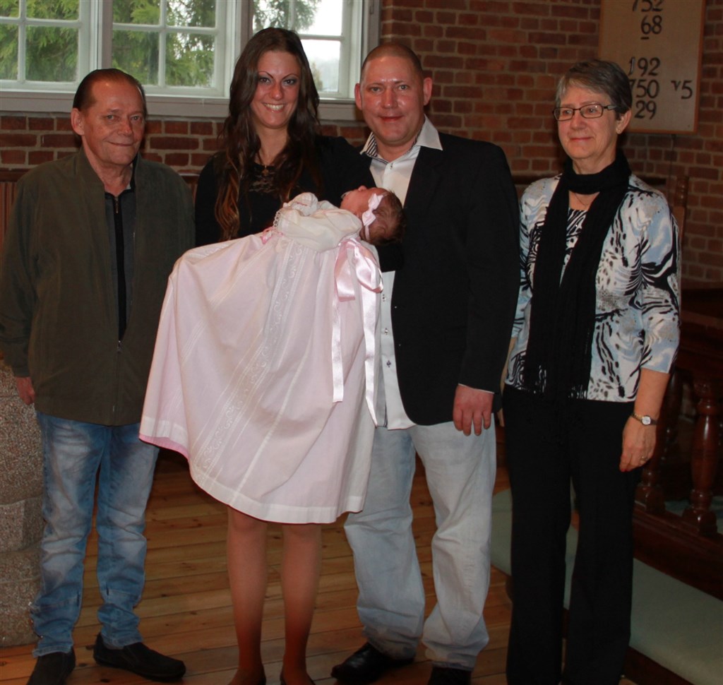 NovemberBaby2013 skriver: Så var det Silkes tur til at få vand i hovedet! Hun blev d. 02.03.14 døbt. Hun klarede bare kirken og festen så flot! Vi var 40 mennesker til brunch, og havde en rigtig god dag!