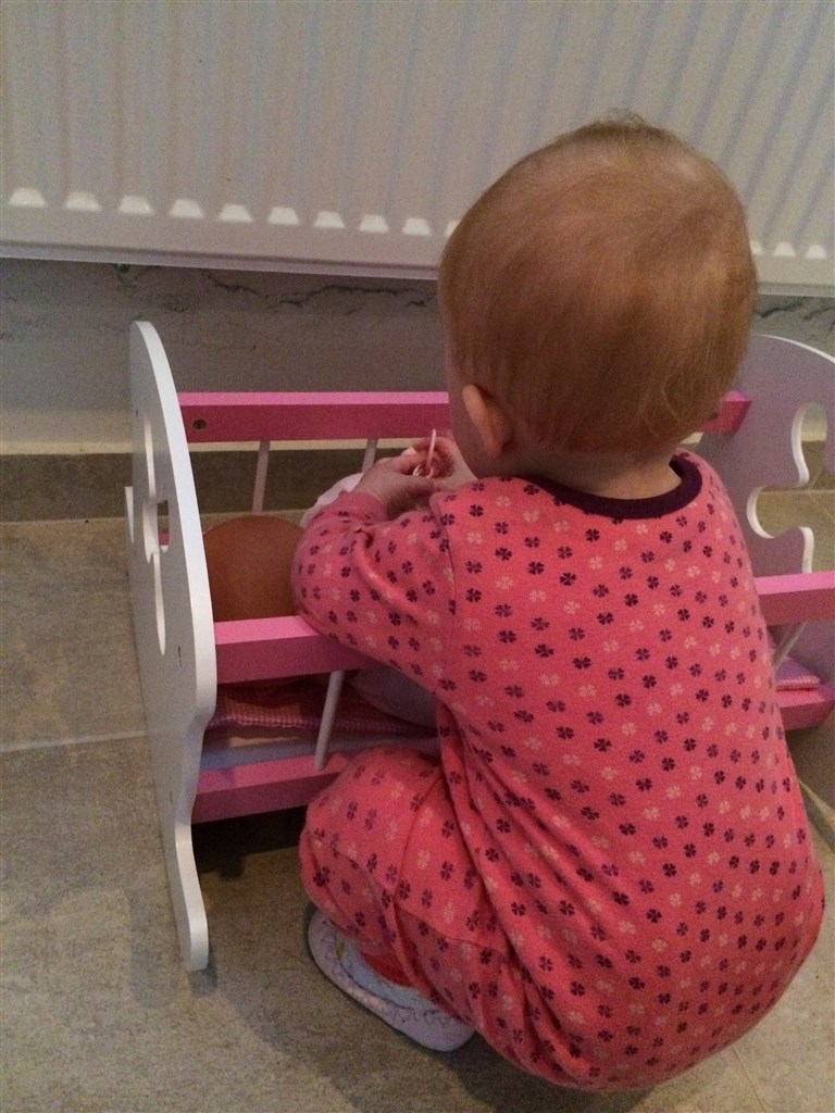 Hun passer også så godt på sin dukke og sørger hele tiden for at den har sin sut eller sutteflaske i munden.