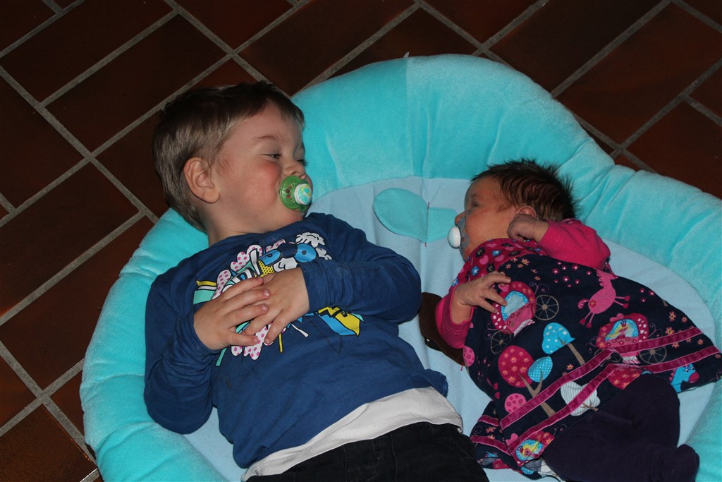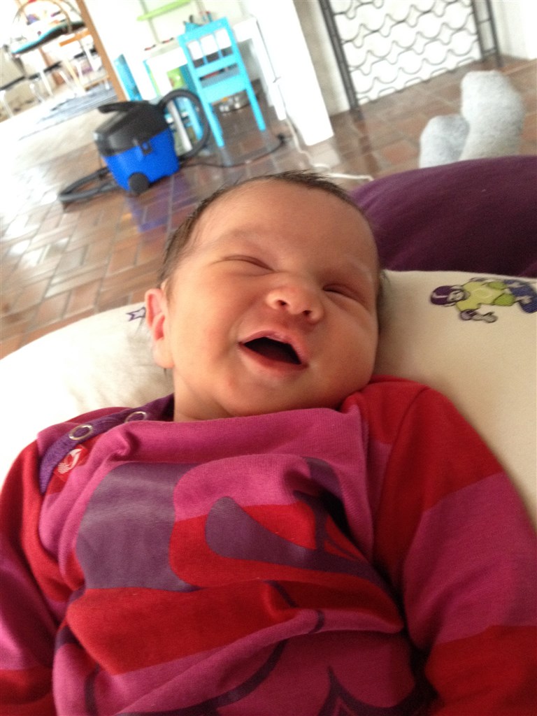 Men ellers så sover hun meget. Mere om dagen end om natten Ikke helt så godt timet Men det er sådan at når de spørger til lillesøster i vuggestuen, svarer Lukas "Hun sover!" Nu må vi se hvor længe hun bliver ved med det. Det vender jo heldigvis