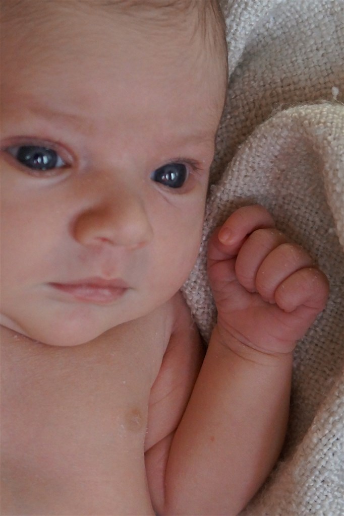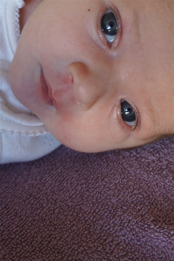 Hun er nu tilbage på fødselsvægten - hun tabte sig 350 gram de første par uger, men efter at vi begyndte at supplere med MME efter hver amning, så tog hun hurtigt på igen, og hun vokser nu lige som hun skal