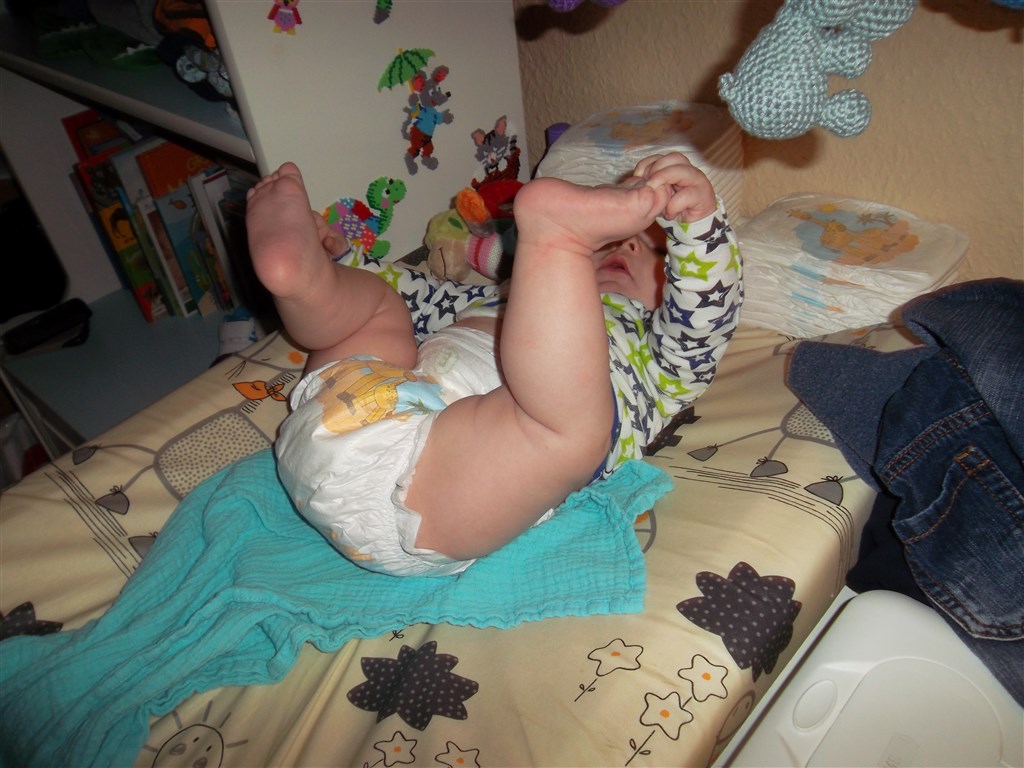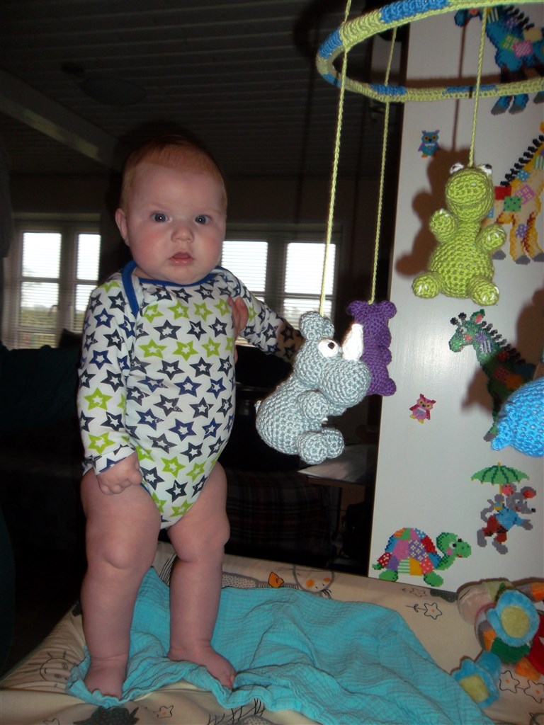 nøj hvor sjovt at se, og nu er det ikke særlig nemt at få ble og tøj på mere når ben og arme altid skal hænge sammen