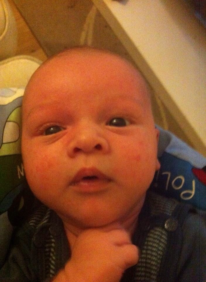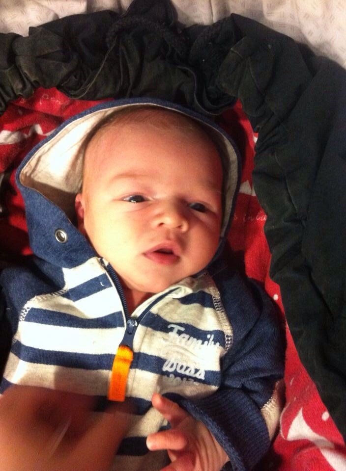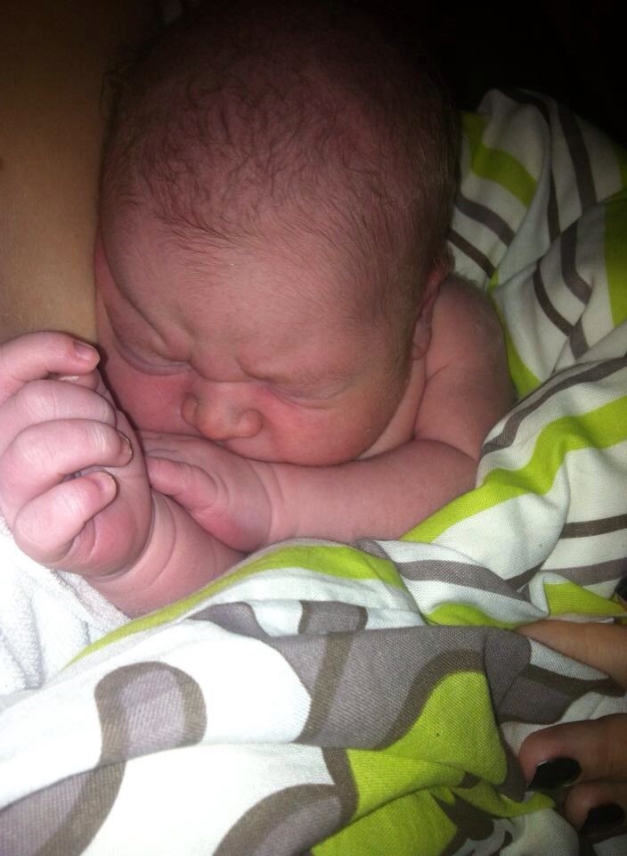 Hjalte blev født 3 dage over tid (19 januar) efter 2'5 time med veer. Vi nåede kun at være på hospitalet i 43 minutter før han kom og han blev født 3 minutter efter mit vand gik.
