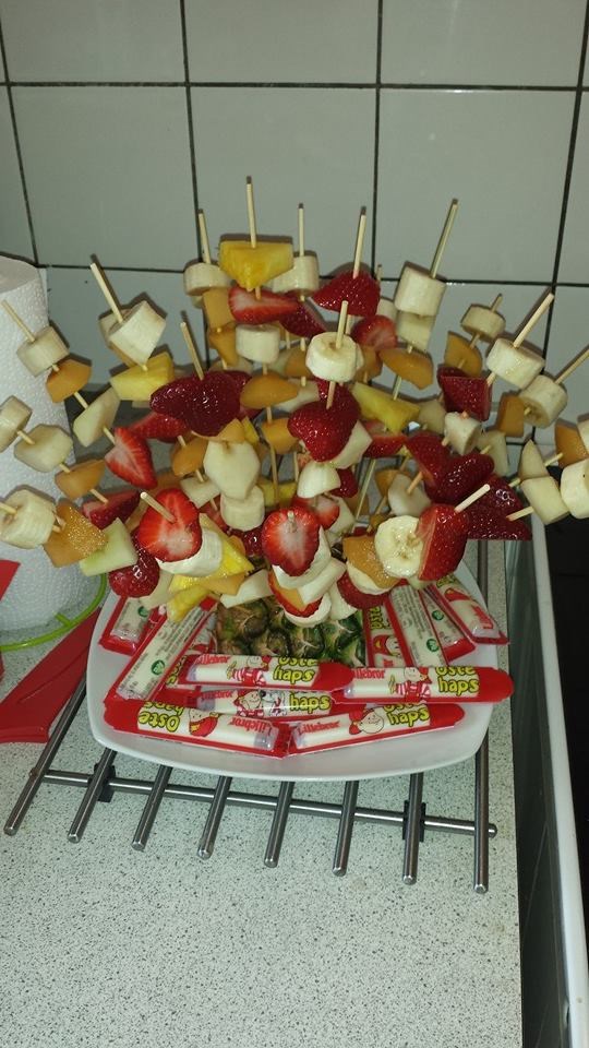 Anthons far havde bagt boller, og jeg lavede et frugtpindsvin, og børnene elskede det!