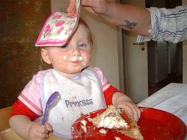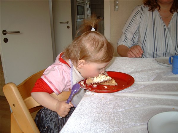 Så sent som idag fik vi kage, min søn på 1 år fik en grovkiks. Han viste ingen tegn på at han ikke var tilfreds med sin kiks.. Min datter på 3 derimod, hun fik også kage for hun er gammel nok til at have en mening omkring at hun også vil smage.