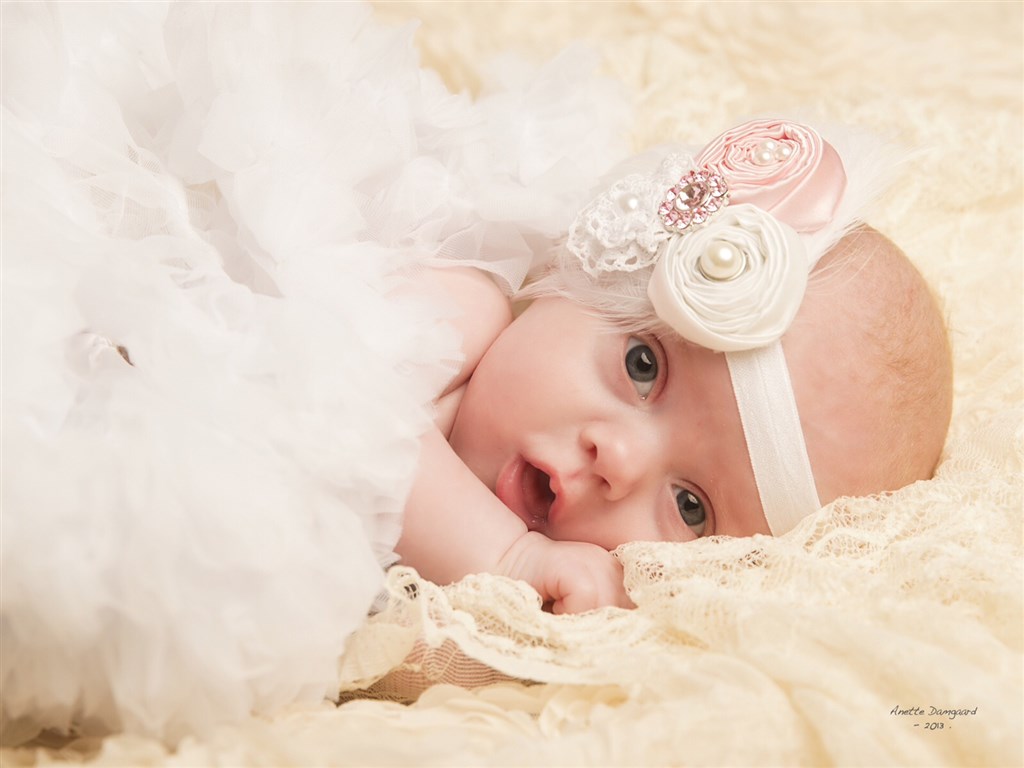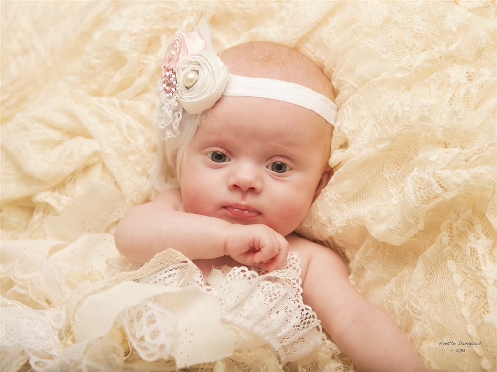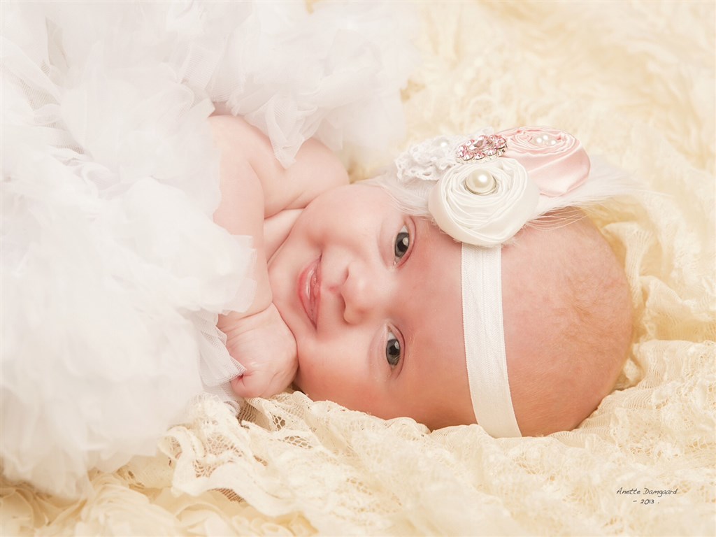 Storesøster blev også fotograferet som baby, men da var baggrunden sort. Hun havde en lysegul dragt på, og det blev nogle stærke, fine portrætter.