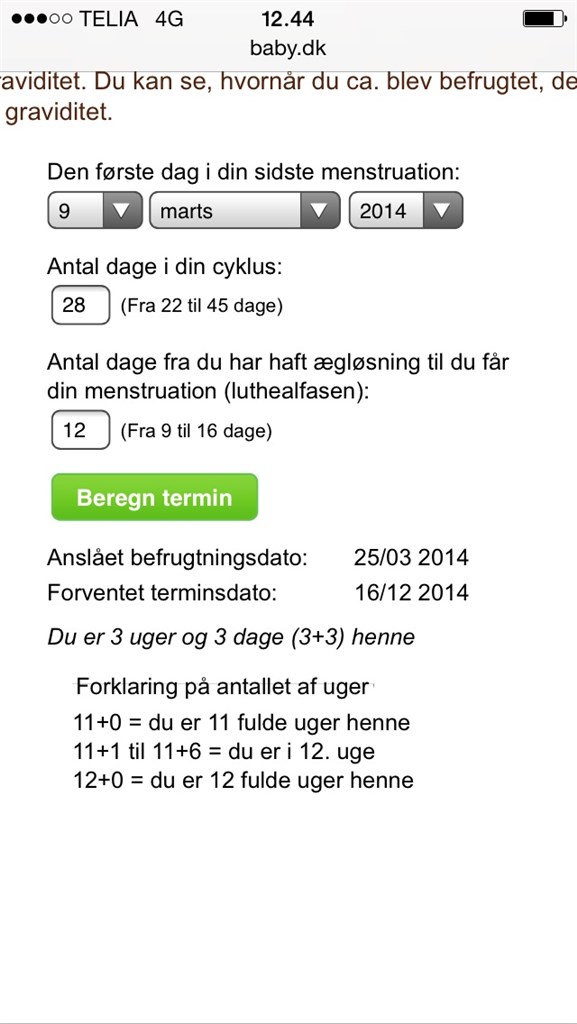 Jeg er i følge de andre testberegnere 3+5 henne (hvis jeg er gravid) men denne på baby.dk kan man taste ægløsning ind og så ved jeg jo at jeg havde ÆL d. 25 marts.