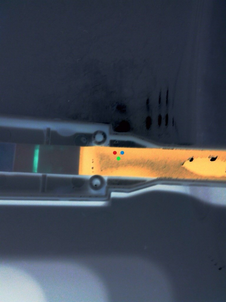 jeg tog eb test igår som vare mere end negativ , tog så en ny Idag hvor der inden for tiden og der kom kontrol stregen med det sammen også der hvor test stregen kom er der i hvert hjørne en lille lyserød prik, er den positiv eller negativ ?