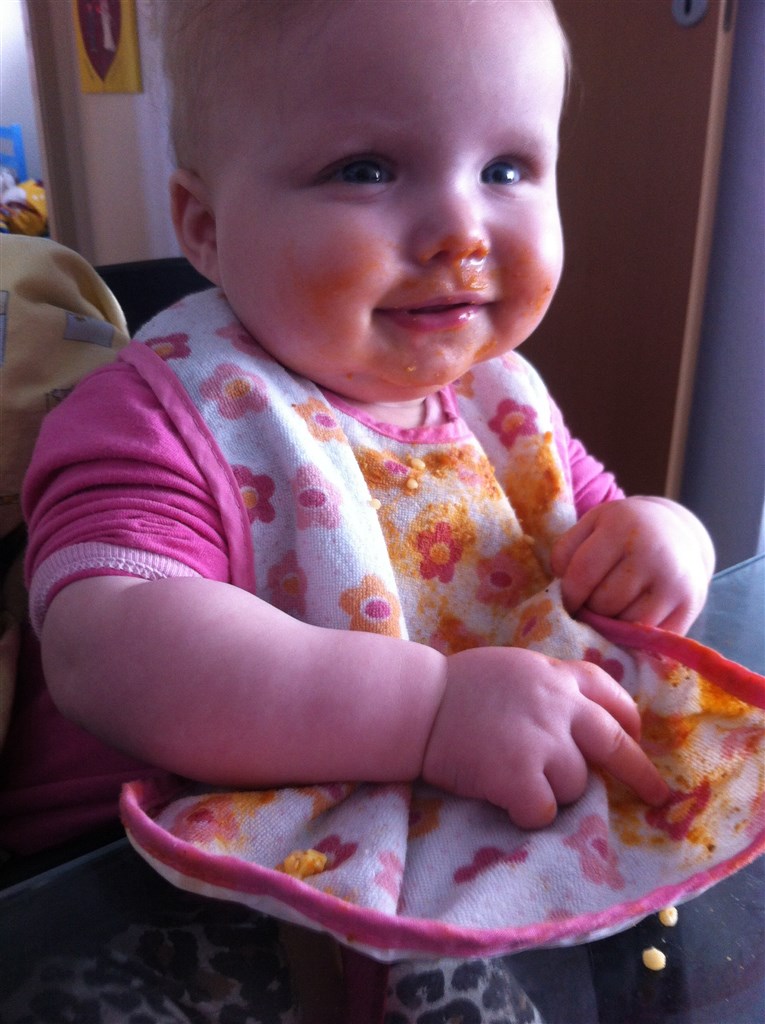 Så blev Celina også 6 måneder. Den sidste måneds tid har trukket lidt tænder ud, Celina har været en del syg og derfor meget pylret og ikke villet sove ret meget. Det har været lidt hårdt når man også studere hjemme. Hun var til vægtkontrol D. 15/4 og havde taget på til 8140 g, så kun 280 gå havde hun taget på. Hun er kommet oven på igen og er glad som hun plejer, men man kan godt mærke man har to børn, for hvis Benjamin bliver snottet/forkølet i børnehaven smitter det Celina med det samme.