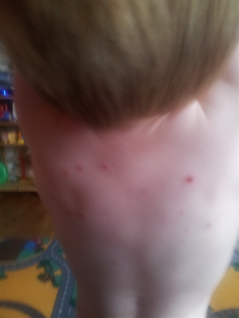 Eller skal han blive hjemme resten af ugen? Synes det er svært at vurdere om der er skorper på dem alle