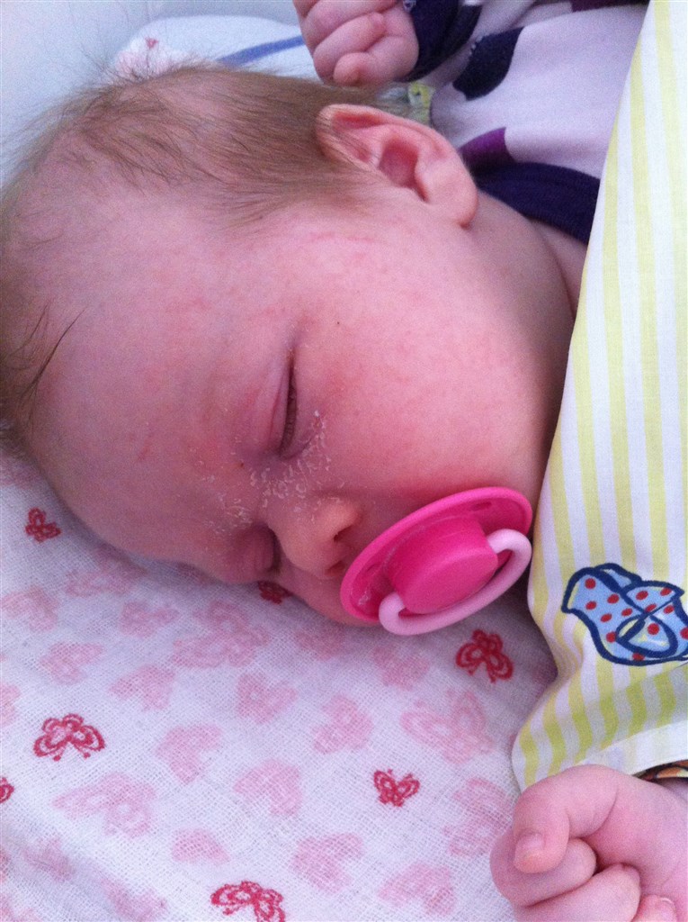 Desværre er hendes hud blevet mere skællende og hun har tabt sig 30g fra i søndags.