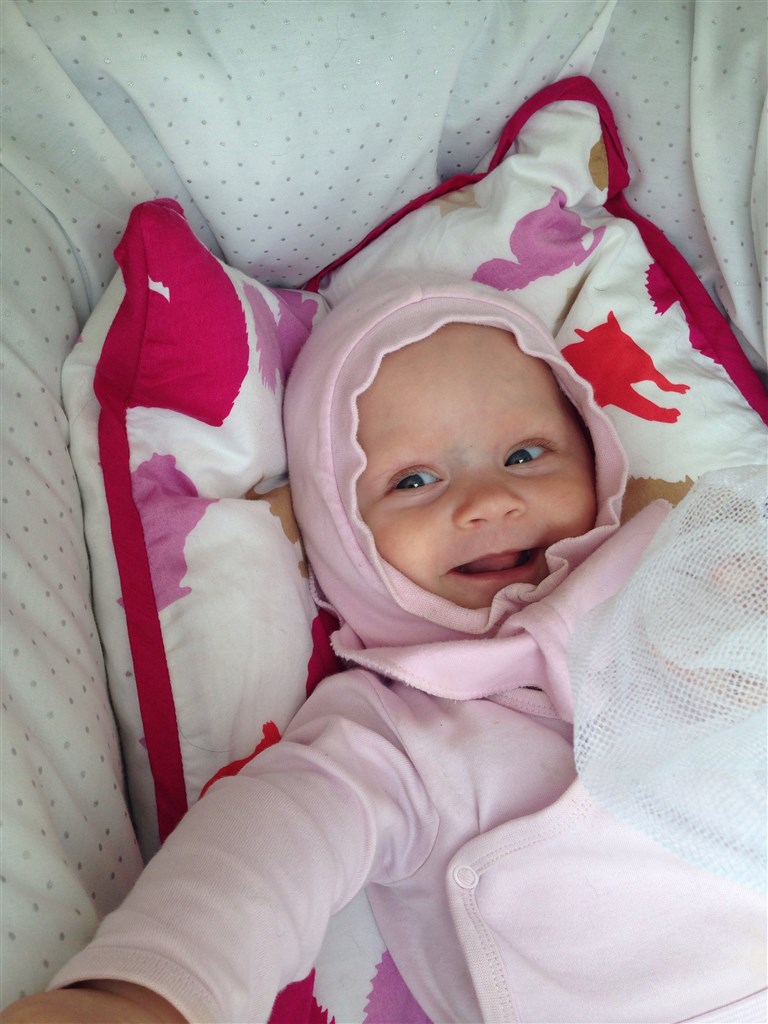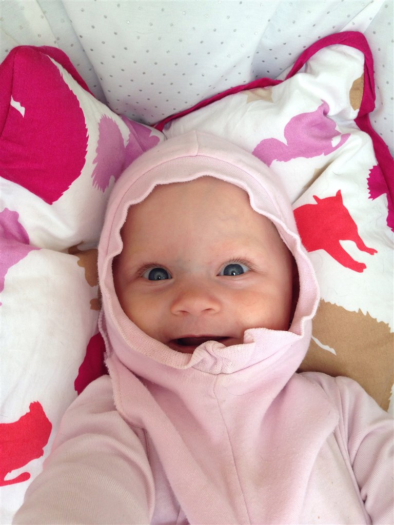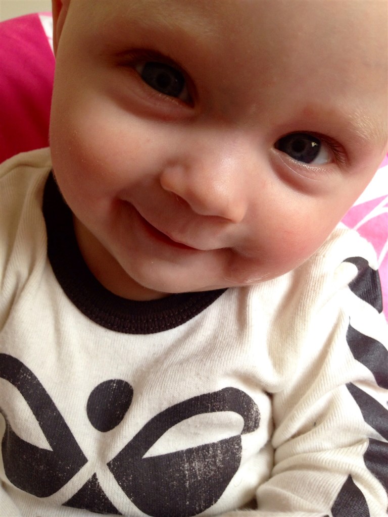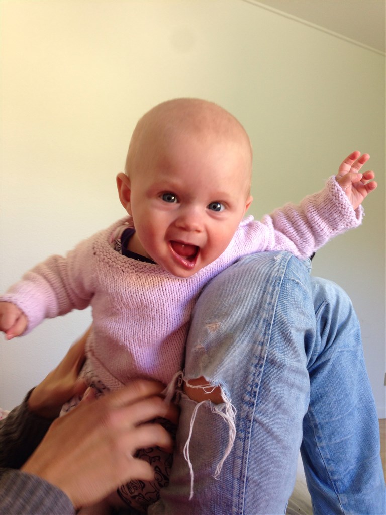 Det går godt med hende, hun er glad og dejlig, vejer 7,7 kg og er 69 cm.