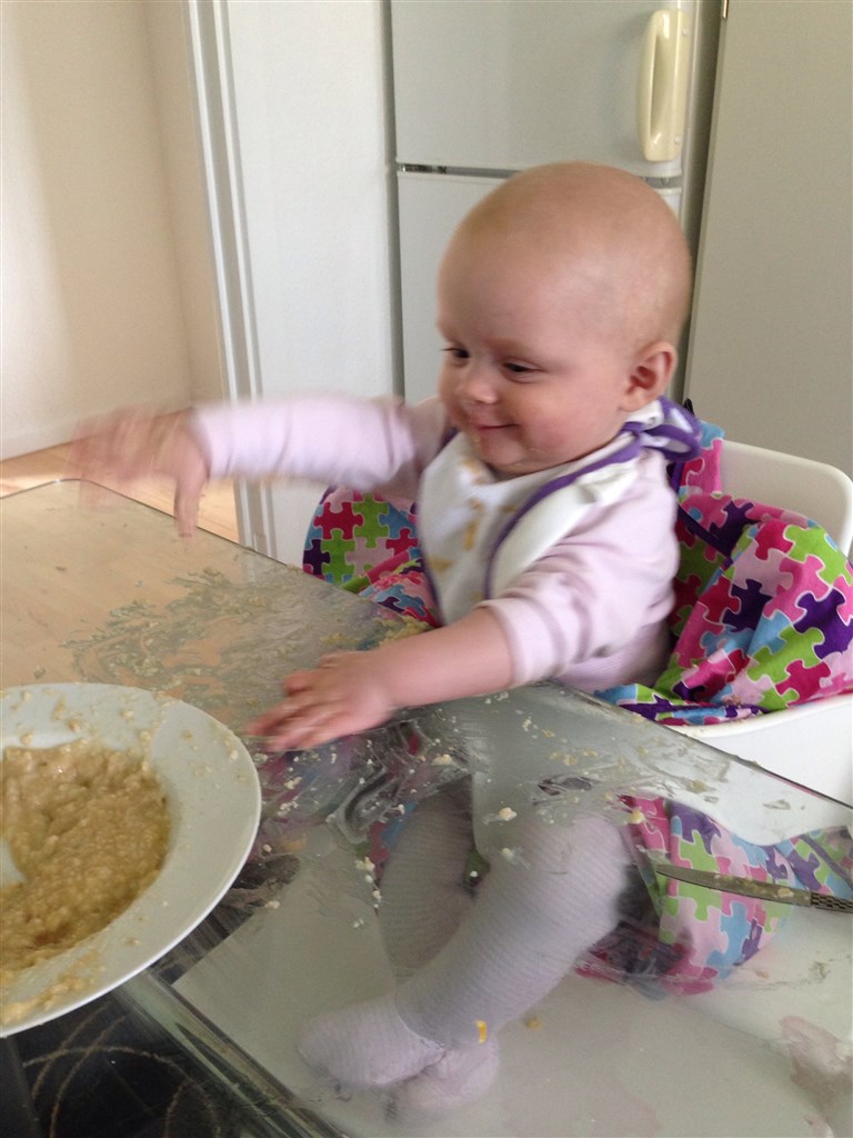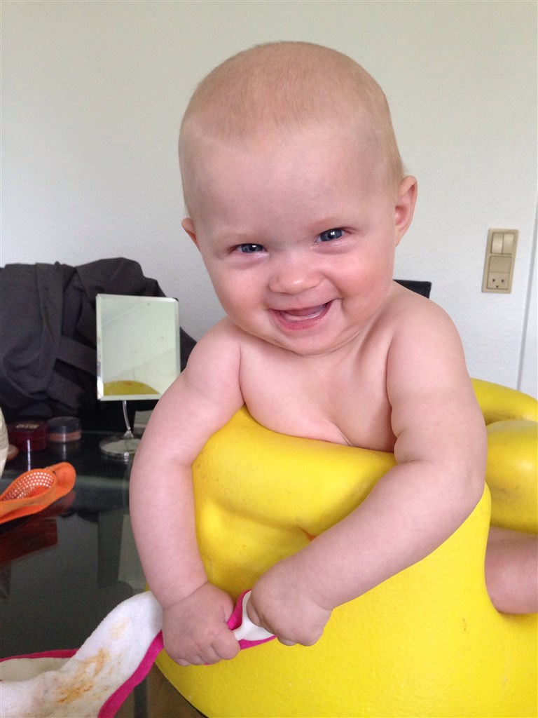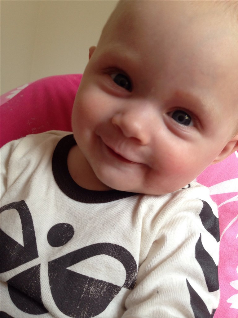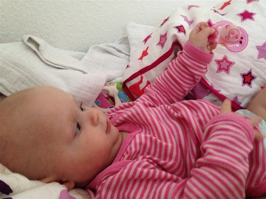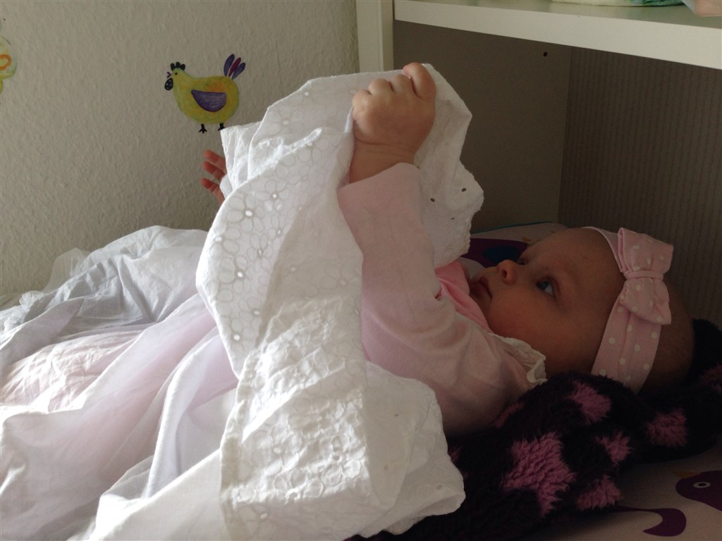 Det går godt med hende, hun er glad og dejlig, vejer 7,7 kg og er 69 cm.