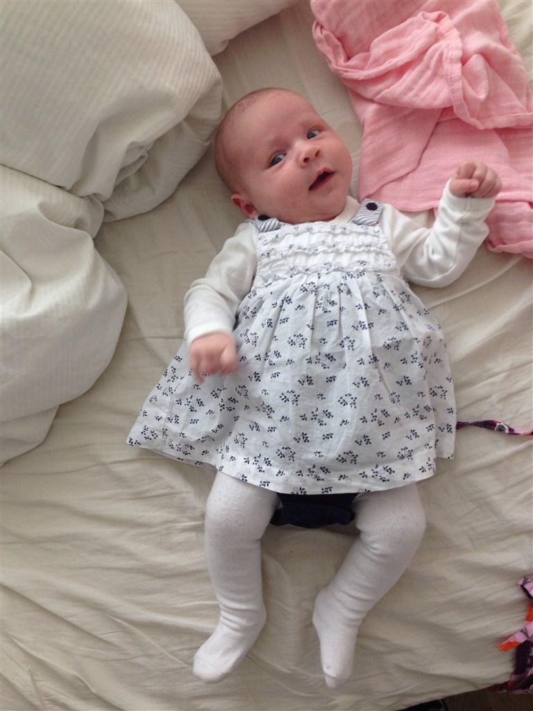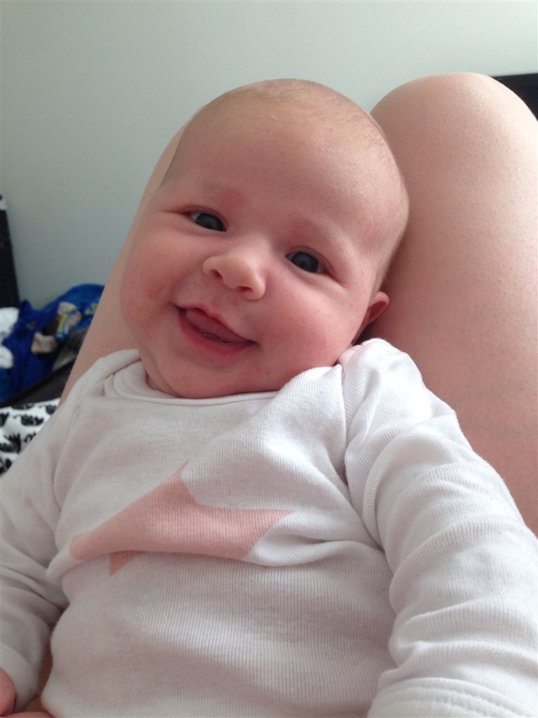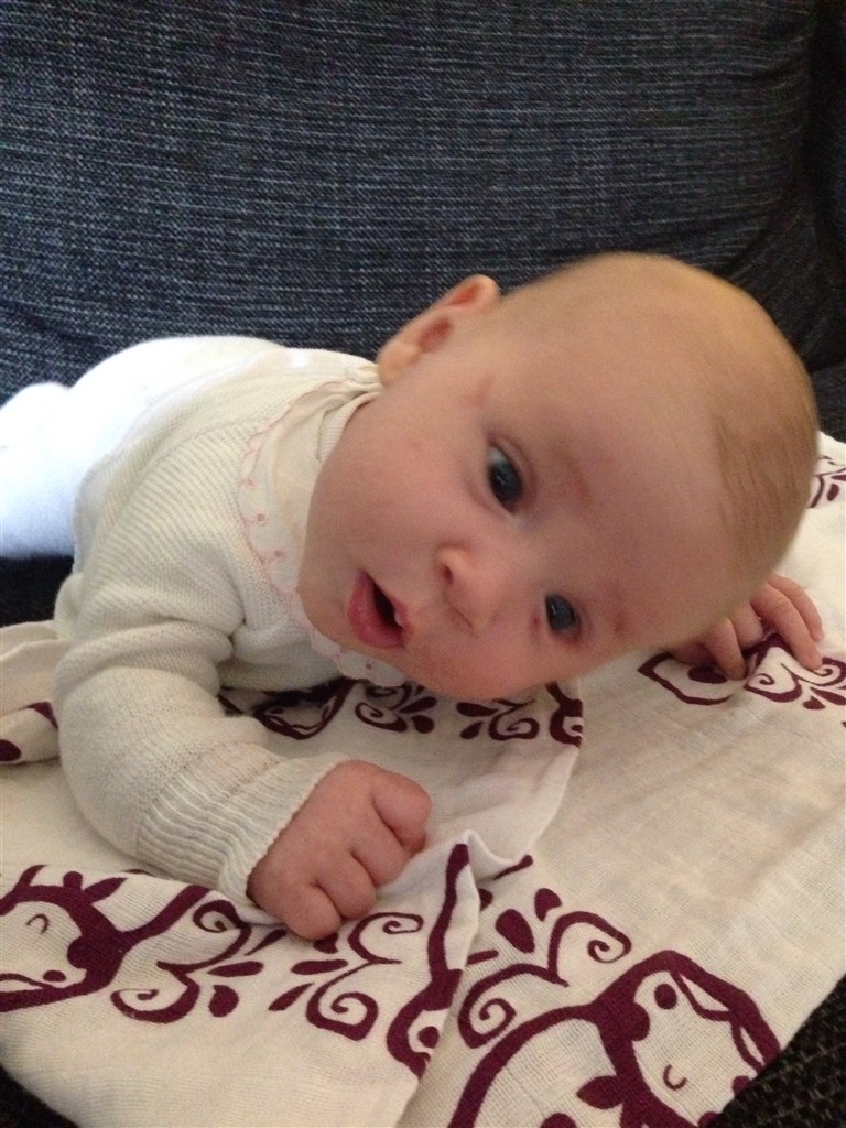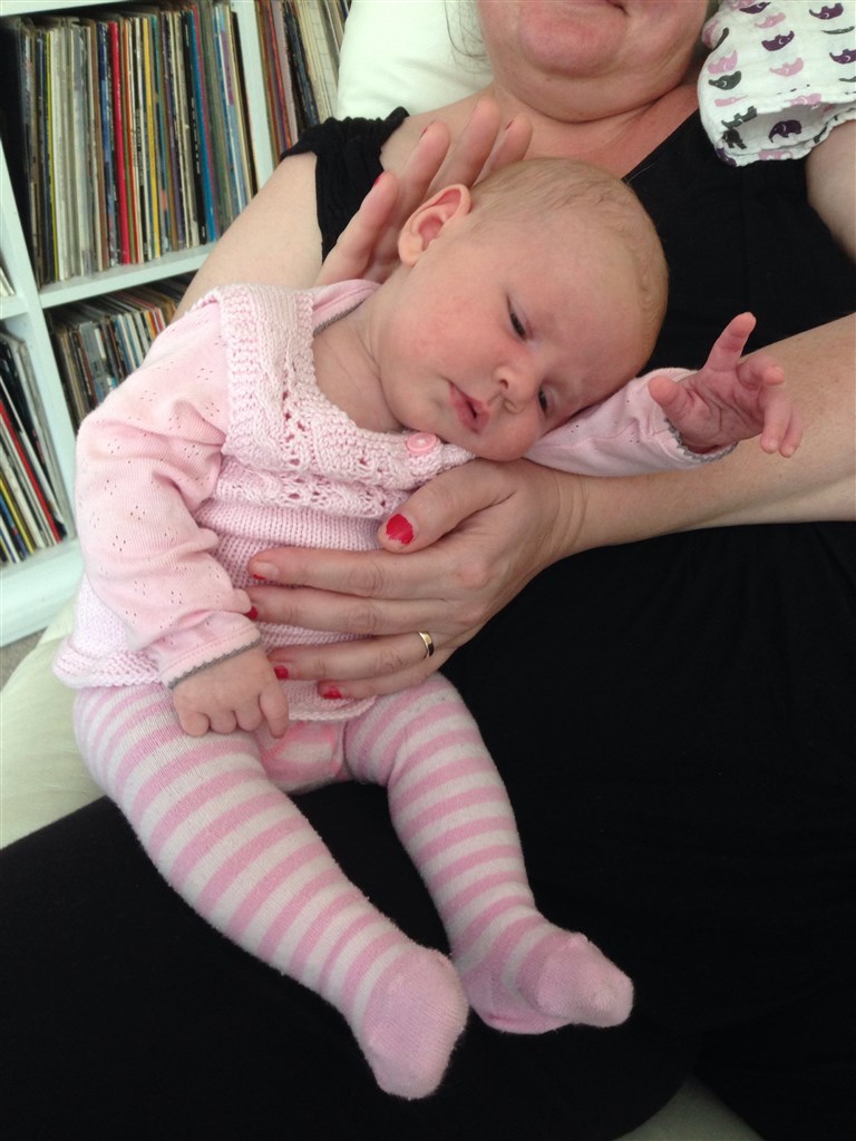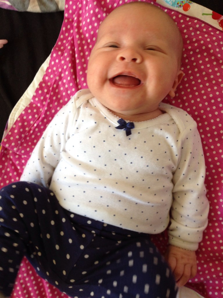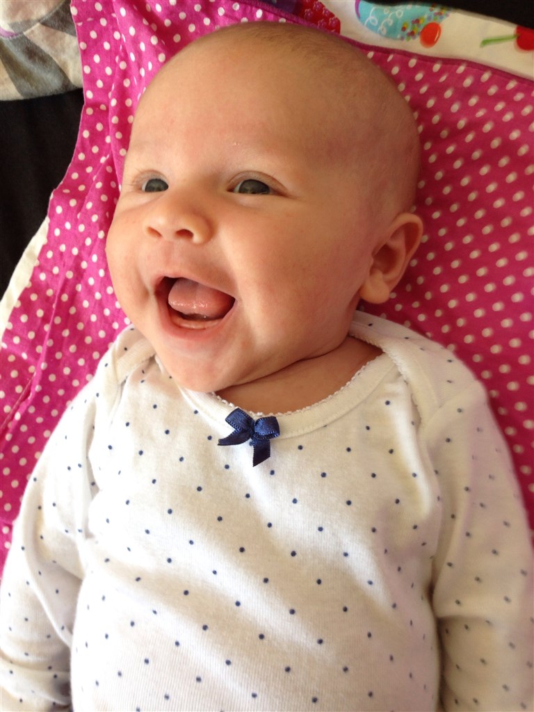 Trives rigtig fint. Er en meget glad og nem lille pige. Storebror Jamie er elle vild med hende og kan ikk få nok af og kramme hende. Så dejligt med søskende kærlighed.