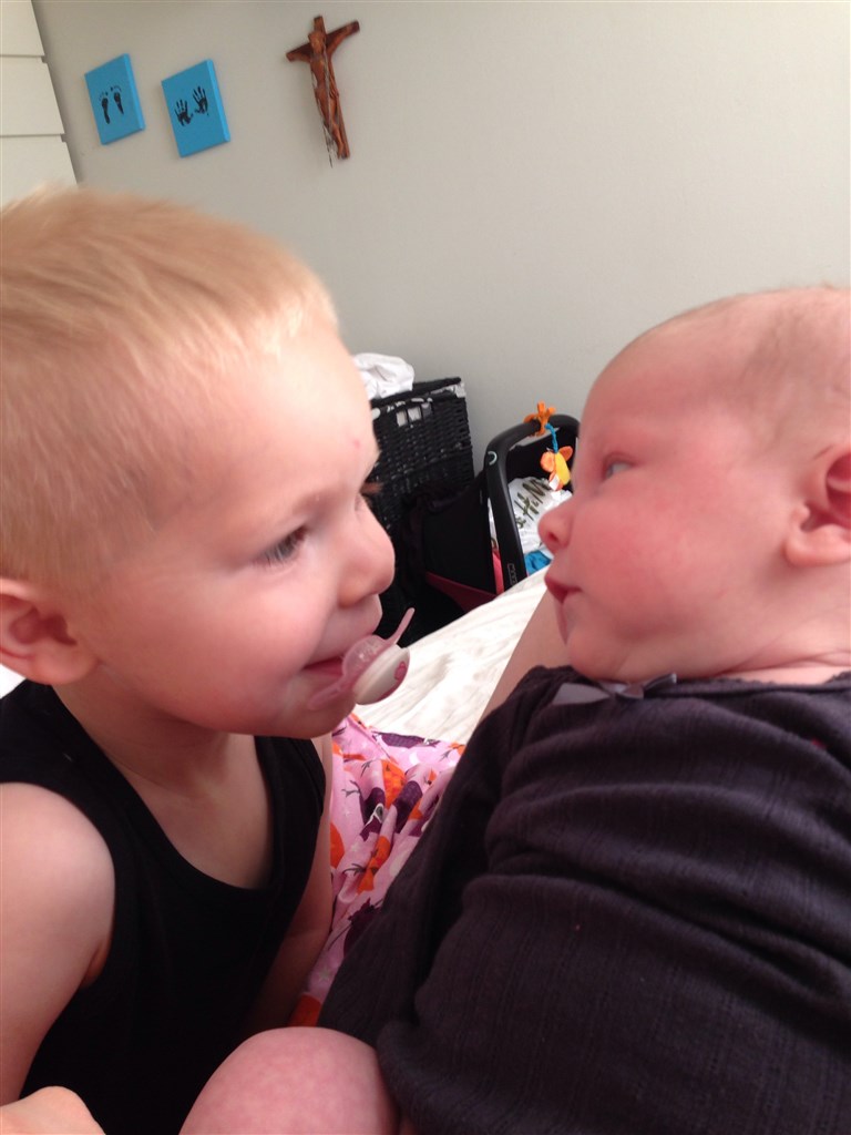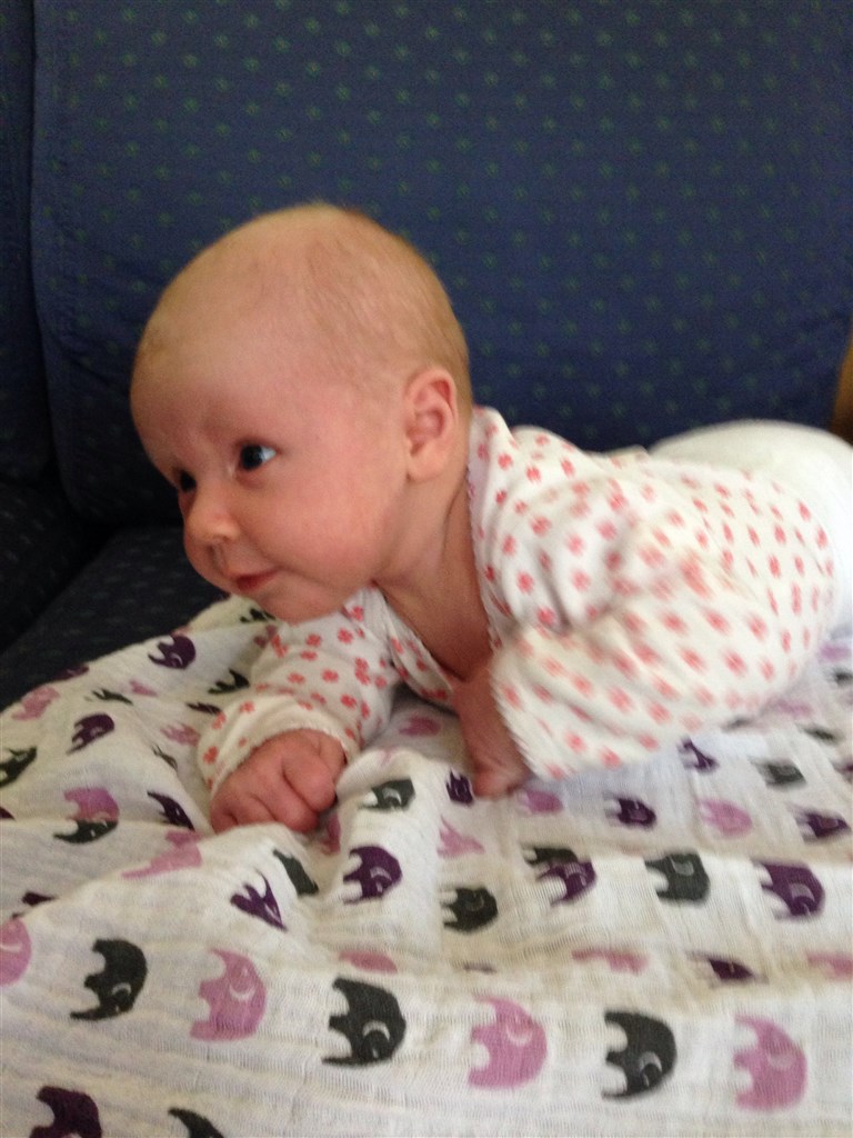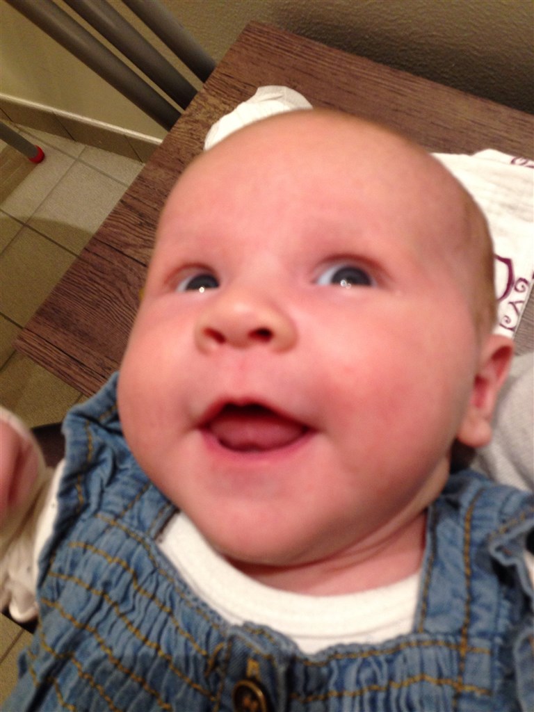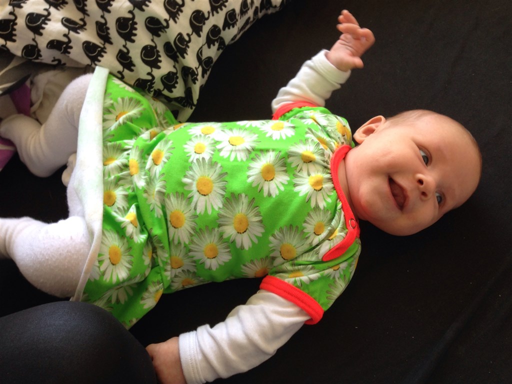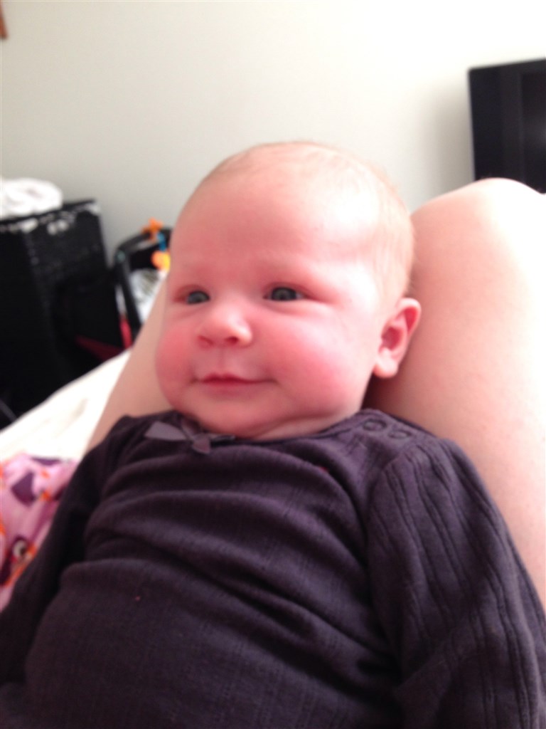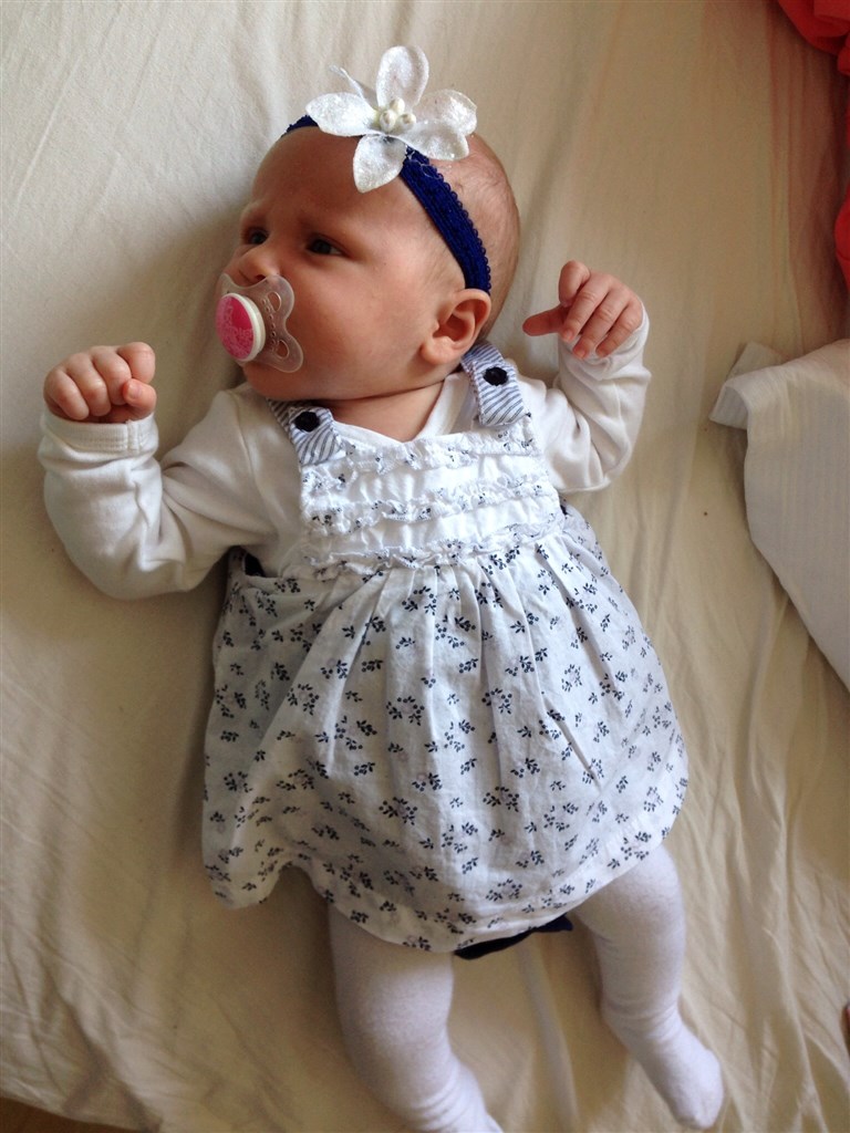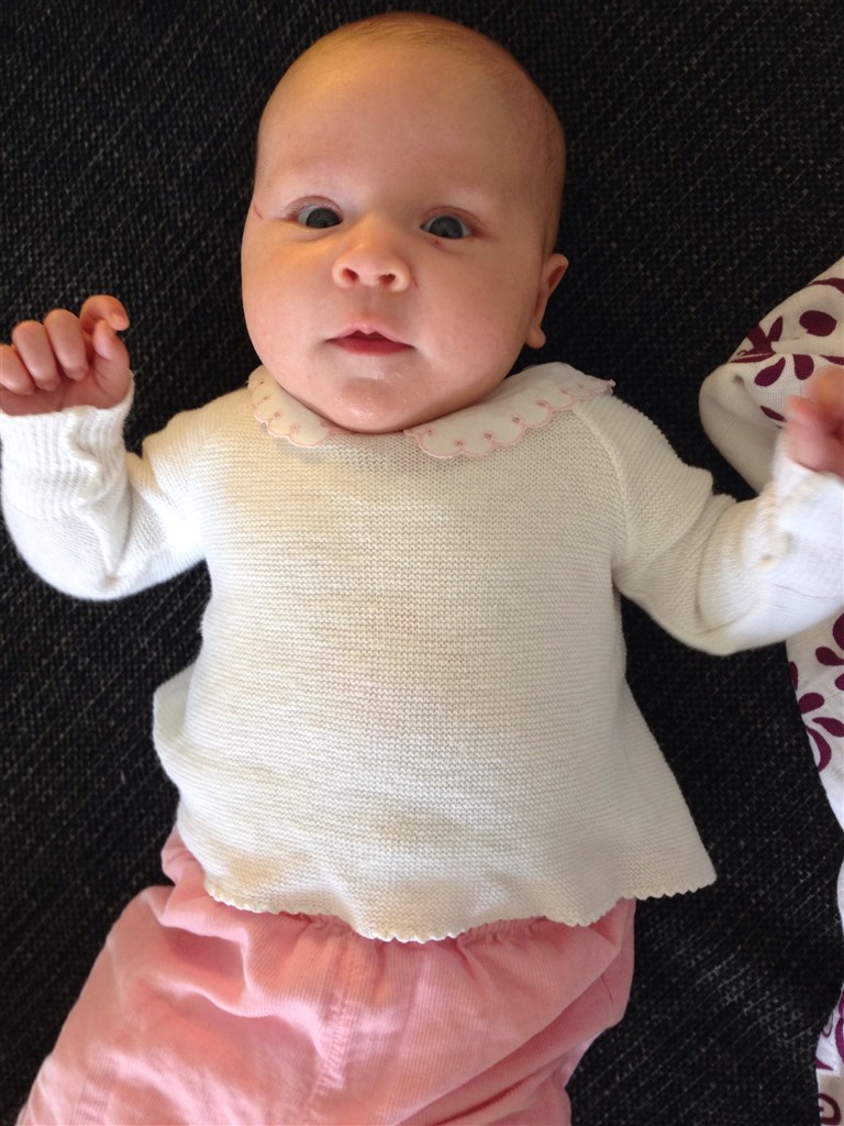 Trives rigtig fint. Er en meget glad og nem lille pige. Storebror Jamie er elle vild med hende og kan ikk få nok af og kramme hende. Så dejligt med søskende kærlighed.
