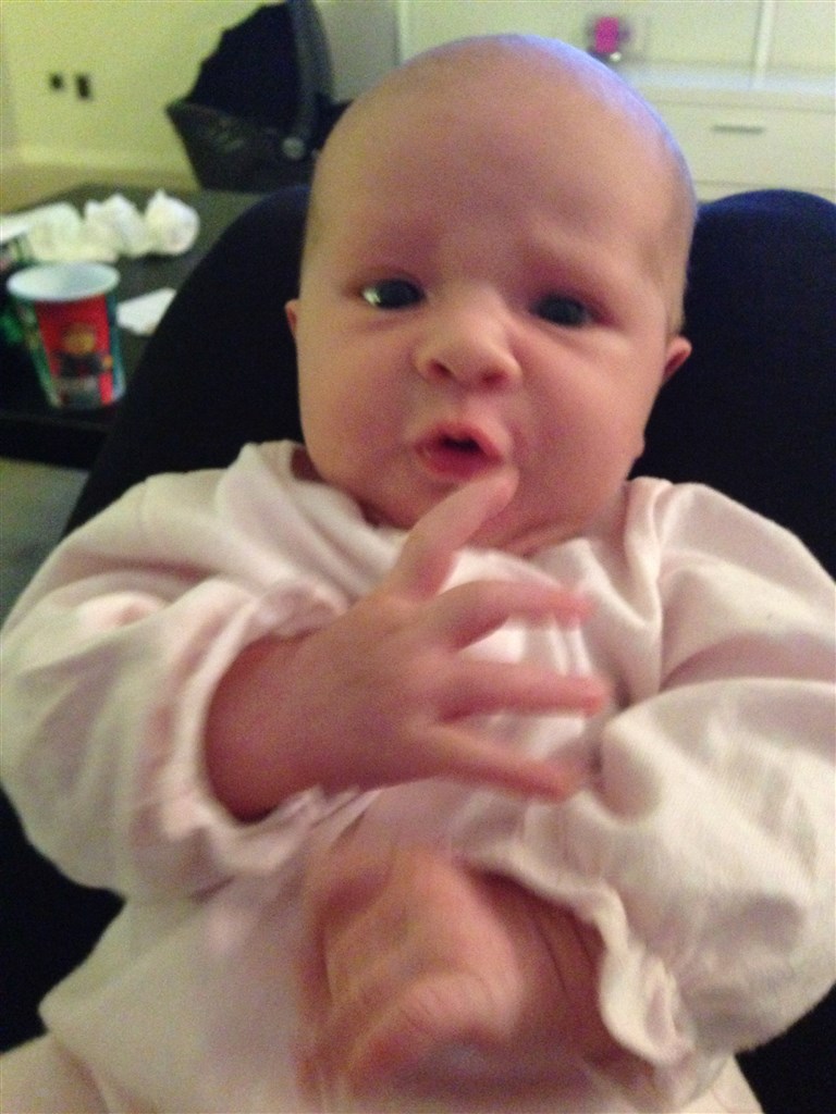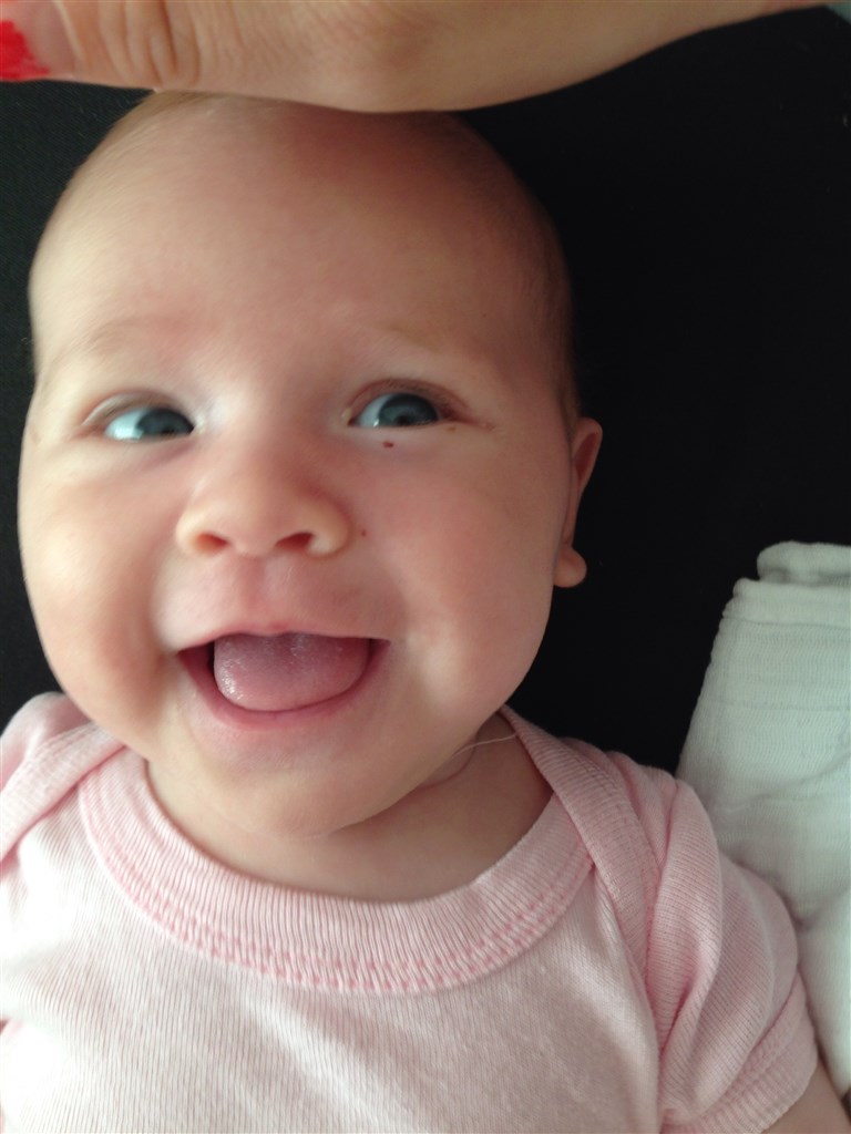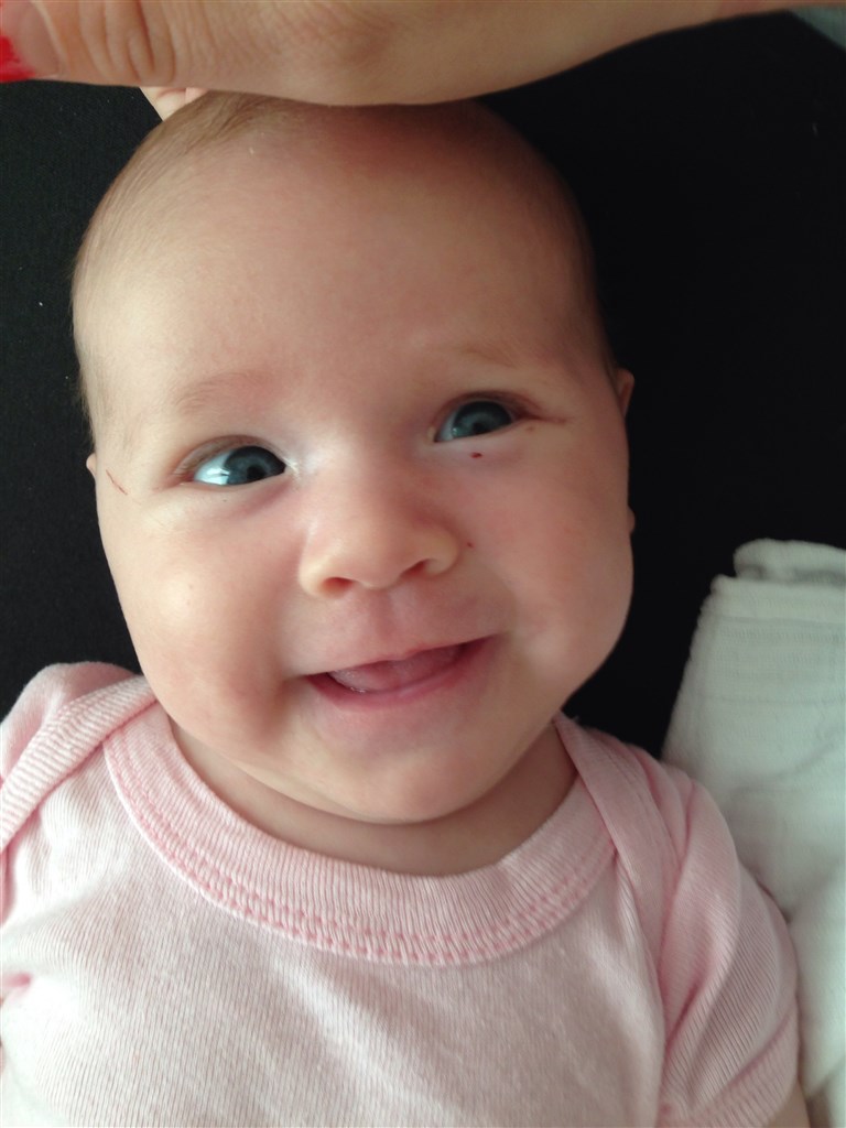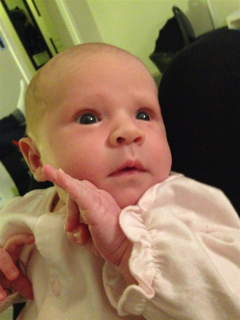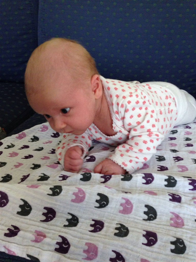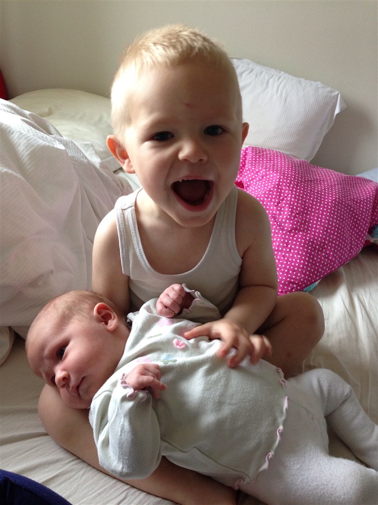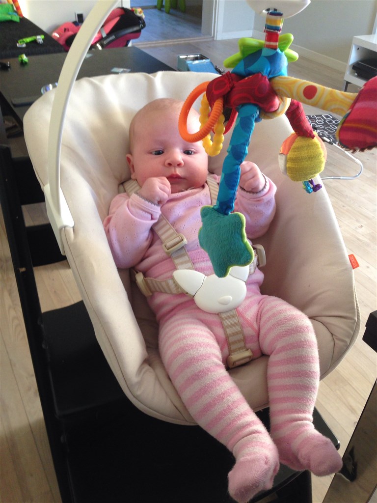Trives rigtig fint. Er en meget glad og nem lille pige. Storebror Jamie er elle vild med hende og kan ikk få nok af og kramme hende. Så dejligt med søskende kærlighed.