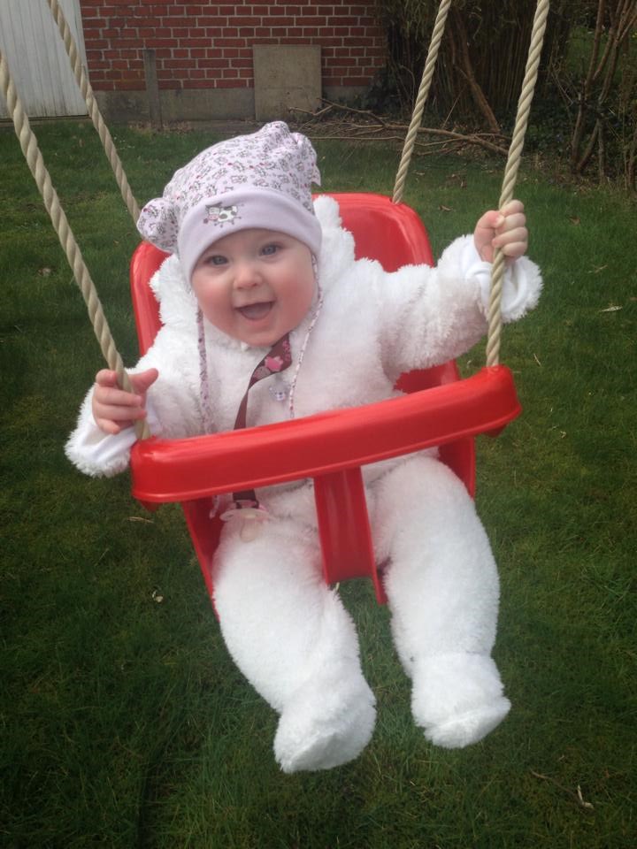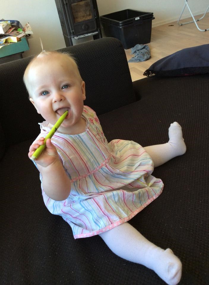 Der er hele tiden gang i hende og samtidig er hun også en rolig pige. Utroligt nok. Hun smiler rigtigt meget og er generelt bare en meget glad lille pige. Hun er nem nok at have med rundt